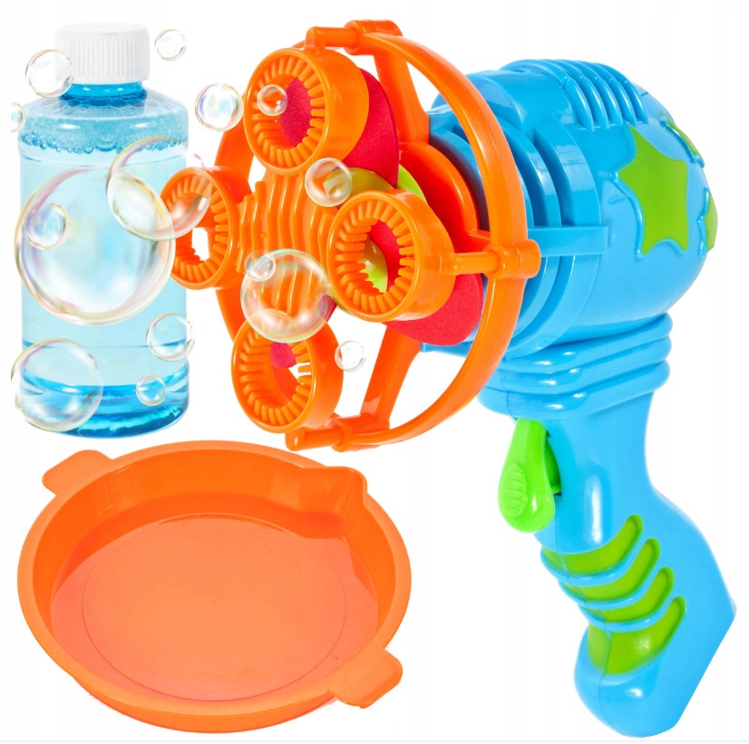 Щоб почати розвагупросто занурте пістолет у рідину, а потім натисніть на спусковий гачок пістолета. Потім вбудований вентилятор почне створювати бульбашки. Пістолет може створювати десятки бульбашок одночасно. Вістря має 4 очі, які утворюють бульбашки. Іграшка виготовлена із сертифікованихміцних матеріалів, а в її структурі немає гострих елементів.