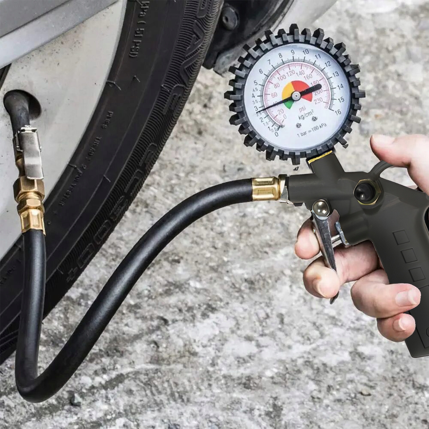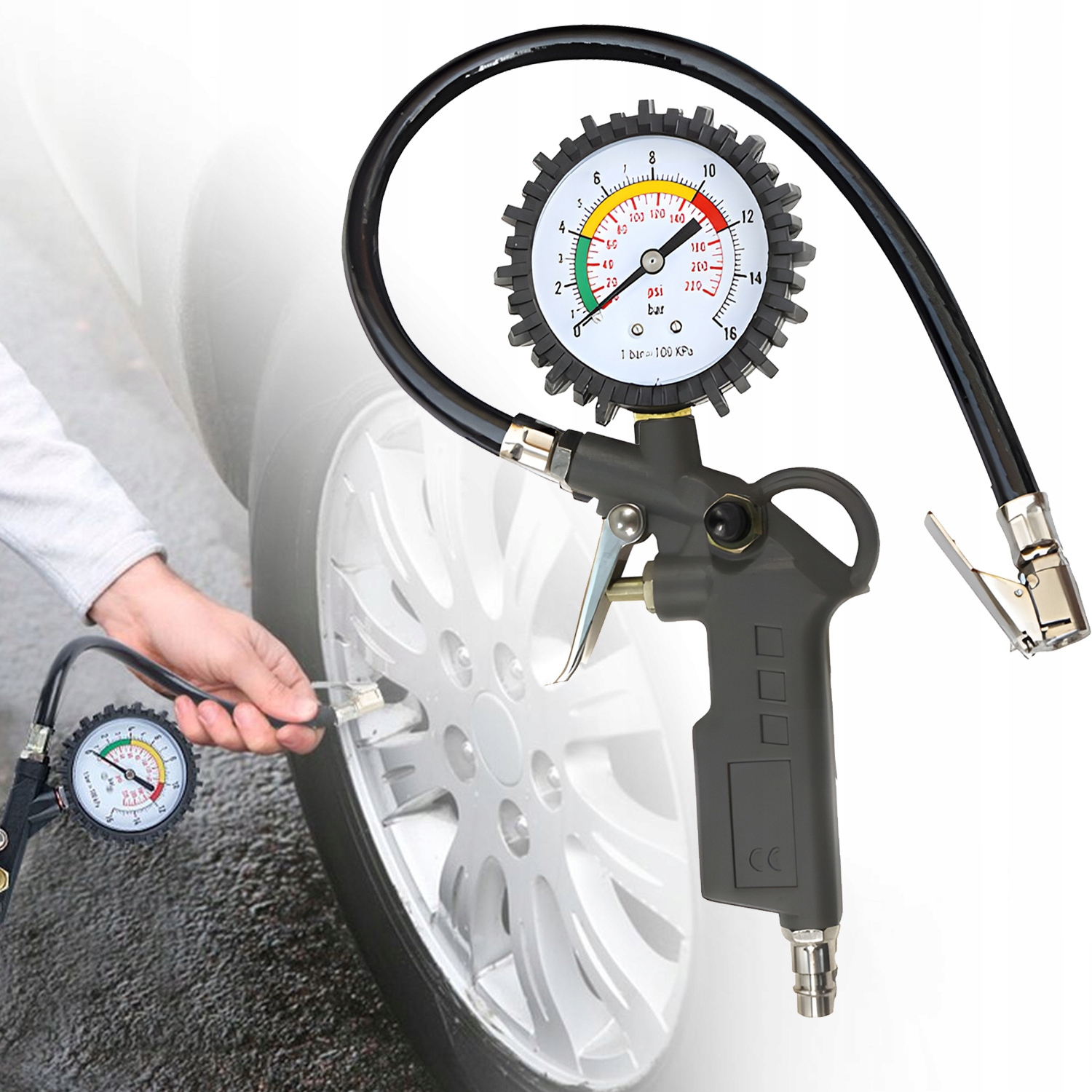 ПІСТОЛЕТ ДЛЯ НАКАЧУВАННЯ КОЛІС З МАНОМЕТРОМ 16 БАР 220 PSI 370ММ 1/4" ГУМОВИЙ