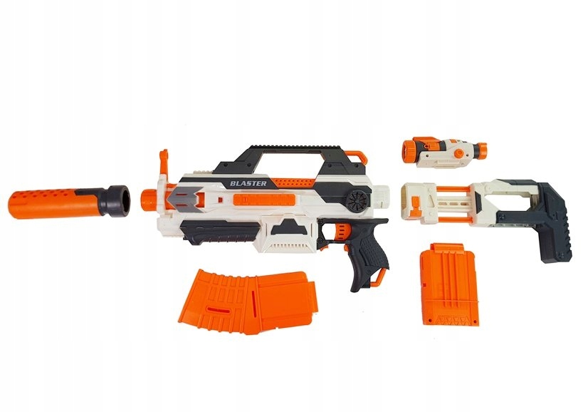 пістолет призначений для всіх дітей старше 6 років . Він був виготовлений із сертифікованих, безпечних матеріалів найвищої якості, завдяки яким він позначений сертифікатом CE , а його виробництво відповідає стандарту EN 71 . Пістолет з аксесуарами, включеними до набору, упакований у синій, естетичну коробку . Щоб запустити пістолет, використовуйте 4 батареї AA 1.5 В.