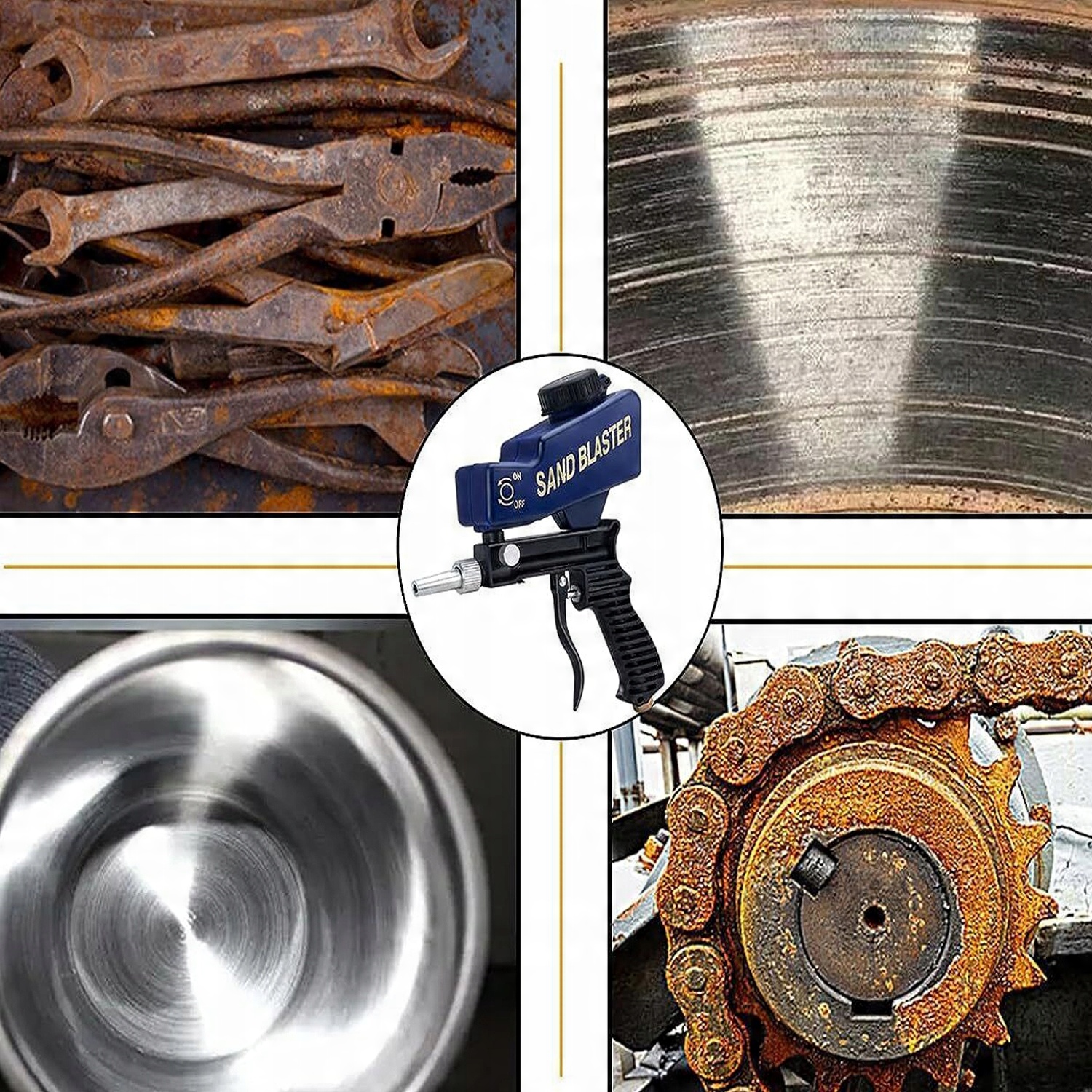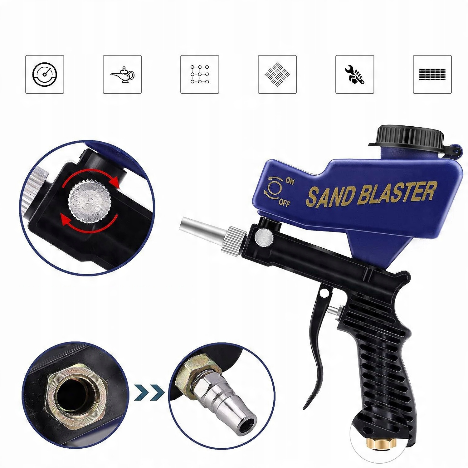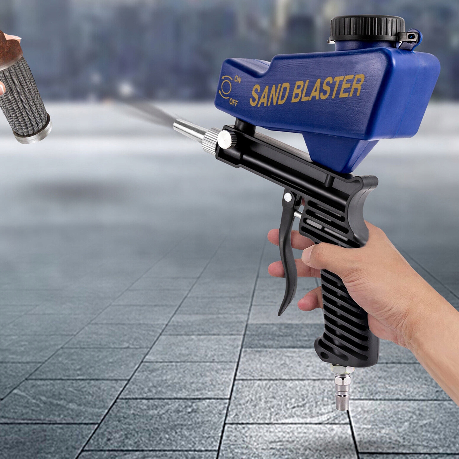 🛡️- Простий у використанні, без складних операцій, просто натисніть кнопку курка, щоб почати піскоструминну очистку, коли ви відпустите руку, курок автоматично втягнеться, щоб зупинити піскоструминну роботу.🚗