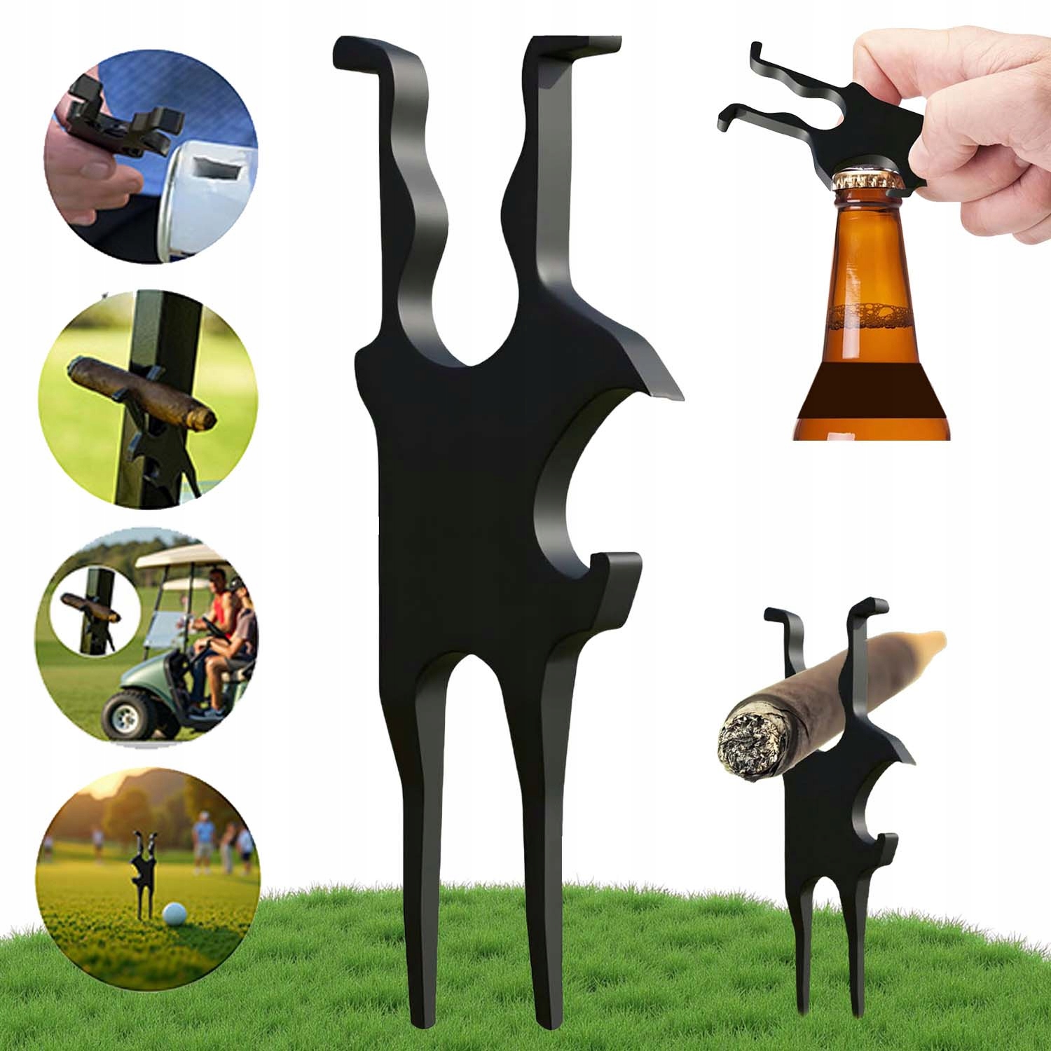 поєднує магнітну ручку сигар, інструмент для видалення зубів, кульовий маркер, відкривач для пляшок та власник інструменту в одному компактному корпусі, завдяки якому він є ідеальним, багатофункціональним аксесуаром для кожного гольфістики.
