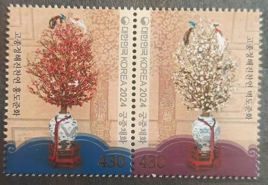 Привіт, і я запрошую вас взяти участь на аукціоні, тема якої є чистою серією південнокорейських поштових марок, опублікованих у 2024 році з теми "мистецтво, тканини - шовкові квіти" - зразок сканування