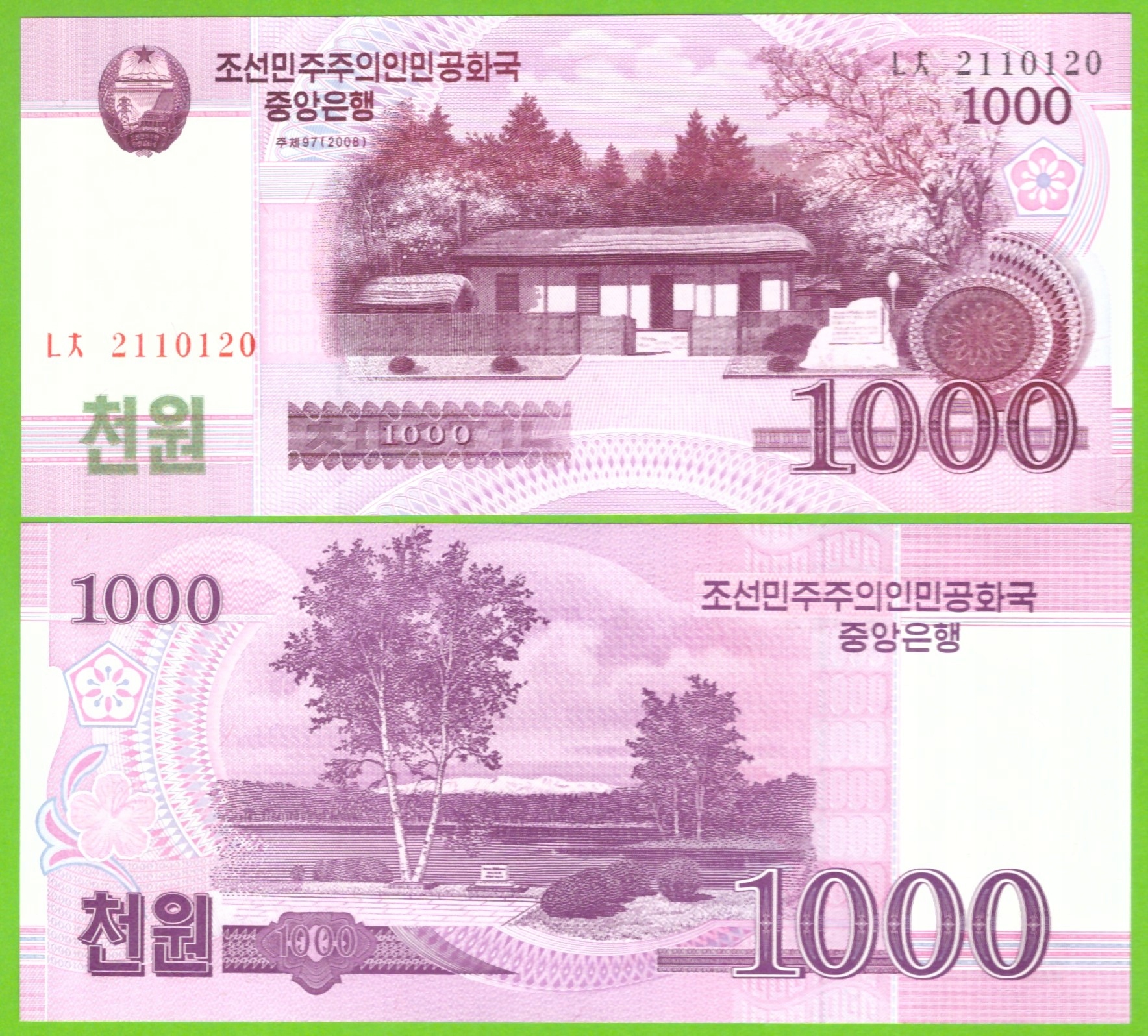 ПІВНІЧНА КОРЕЯ 1000 ВОН 2008 P-64(1) UNC РІДКІСНІ БЕЗ ОТБІТКІВ