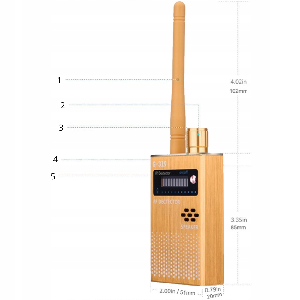 Ми представляємо останню модель детектора G319 від бренду Spreest, розробленої для точного та ефективного виявлення всіх видів шпигунських пристроїв, доступних на ринку. Завдяки вдосконаленій технології та широкому спектру частоти, G319 - це незамінна підтримка у захисті вашої конфіденційності та інформаційної безпеки.