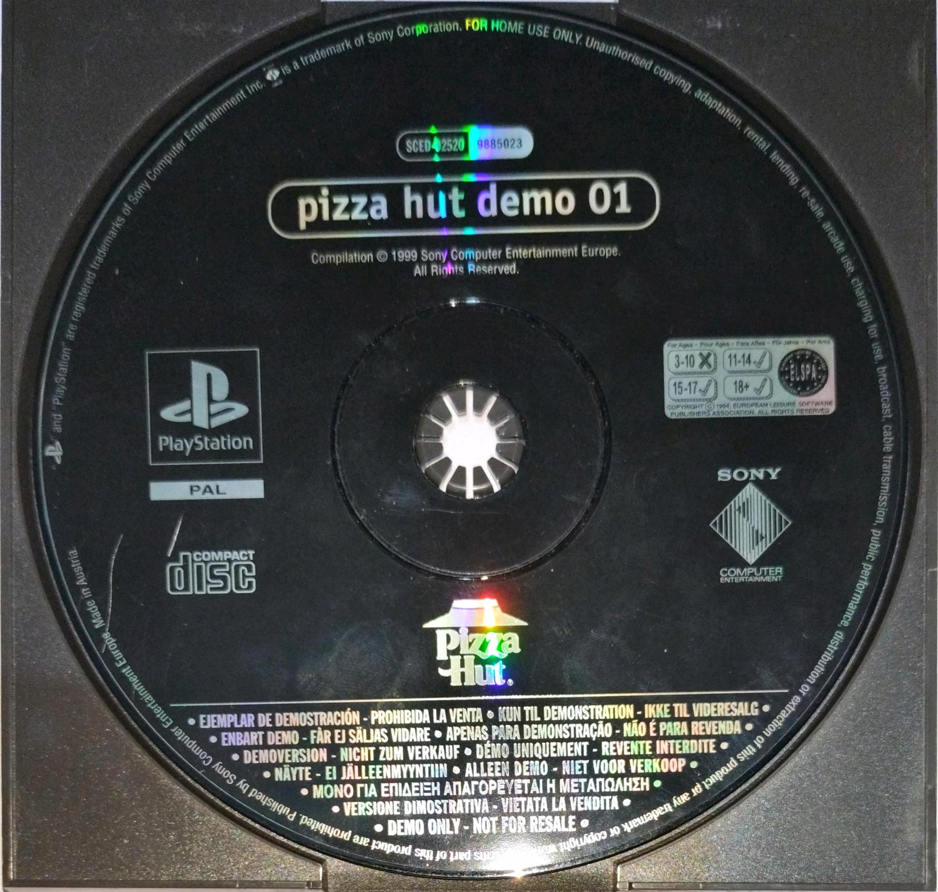 PIZZA HUT DEMO 01 PSX PS1 ПРОЧИТАЙТЕ ОПИС!