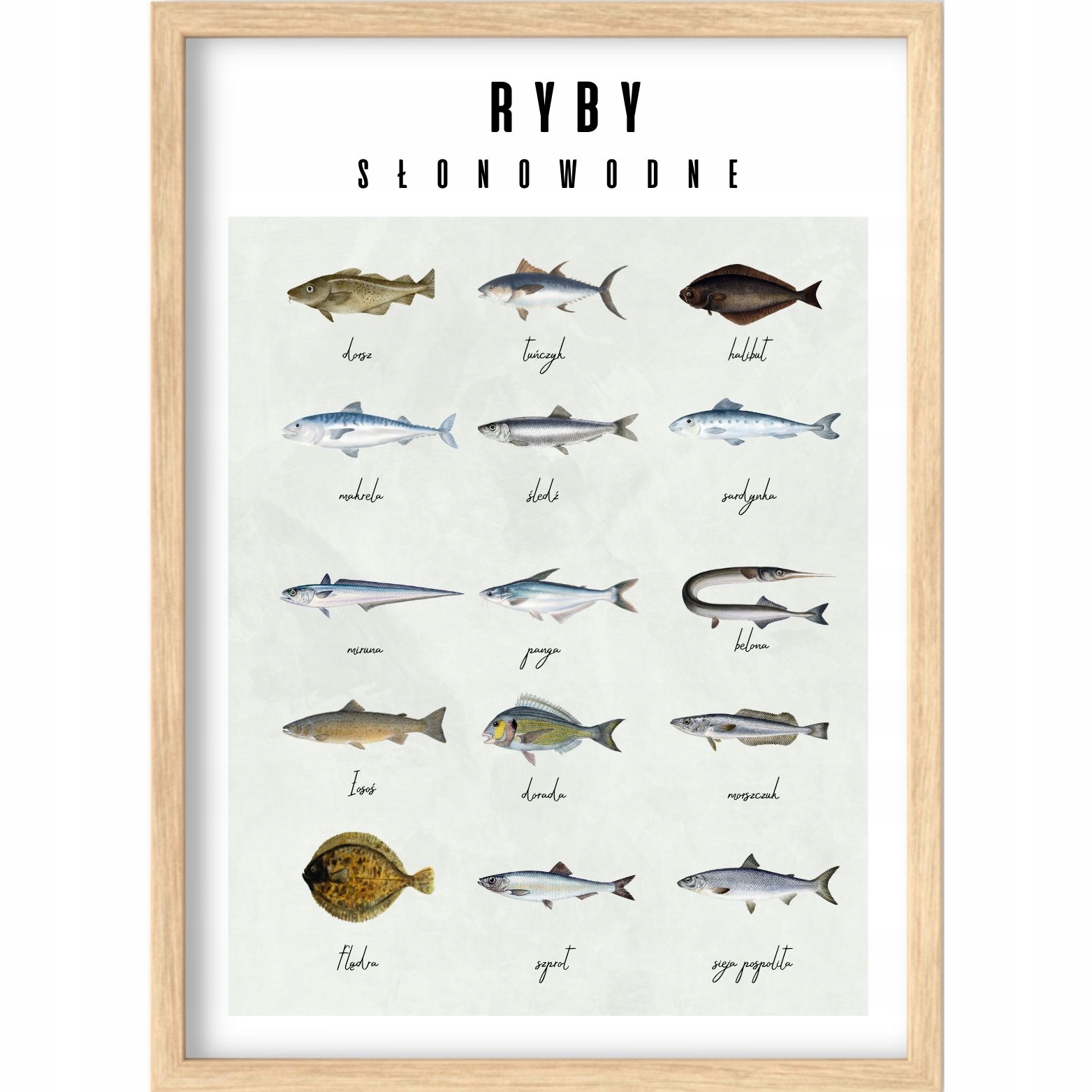 ПЛАКАТ 40X50 ВИДИ РИБ МОРСЬКА РИБА РИБАЛКА РИБА НАВЧАЛЬНА КАРТИНА