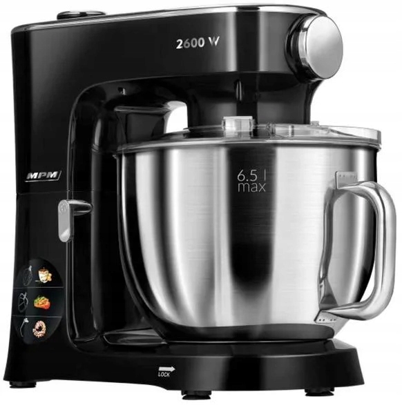 Планетарний робот MPM Mrk-22 Czarny Планетарний робот MPM Mrk-22 Czarny — це універсальний пристрій, який покращить приготування різноманітних страв, від тортів і кремів до домашнього хліба. Завдяки потужному двигуну, планетарній системі змішування і багатому набору аксесуарів, він є незамінним помічником на кожній кухні. Завдяки елегантному чорному дизайну пристрій ідеально впишеться в сучасний інтер'єр кухні. Переваги: - Висока потужність двигуна 2600 Вт - Металева чаша об'ємом 6,5 л - Функція нагріву (ферментації) 45°C - 11-швидкісне регулювання швидкості - Планетарне переміщення насадок - Електронний світлодіодний дисплей Потужний двигун і ефективна робота Планетарний робот MPM Mrk-22 оснащений ефективним двигуном 2600 Вт, який легко справляється з більш важкими завданнями, такими як замішування тіста. хліба або замішування густих мас. Завдяки цьому прилад забезпечує швидку та ефективну роботу, незалежно від виду страви, що готується. Планетарна система змішування Завдяки планетарній системі змішування пристрій обертає міксери таким чином, щоб вони досягали кожного куточка чаші, забезпечуючи рівномірне змішування інгредієнтів. Це ідеальне рішення для приготування пишних коржів, кремів, а також для замішування ідеально гладкого хлібного тіста. Містка чаша і комфорт використання. Робот оснащений великою чашею з нержавіючої сталі об'ємом 6,5 літра, що дозволяє готувати більші порції за один робочий цикл. Це відмінне рішення для людей, які готують на велику кількість людей або люблять готувати їжу заздалегідь. Крім того, чаша легко чиститься і стійка до подряпин. Універсальність і додаткові аксесуари У комплекті з роботом є різні аксесуари: гак для тіста, віночок і міксер, які дозволяють готувати різноманітні страви, від легких кремів до густого тіста. Крім того, регулювання швидкості дозволяє регулювати потужність робота під поточні потреби. Планетарний робот MPM Mrk-22 Black Це поєднання сучасних технологій, міцної конструкції та функціональності, які зроблять будь-яке кулінарне завдання простішим та приємнішим. Ідеальний вибір для кожного ентузіаста кулінарії!