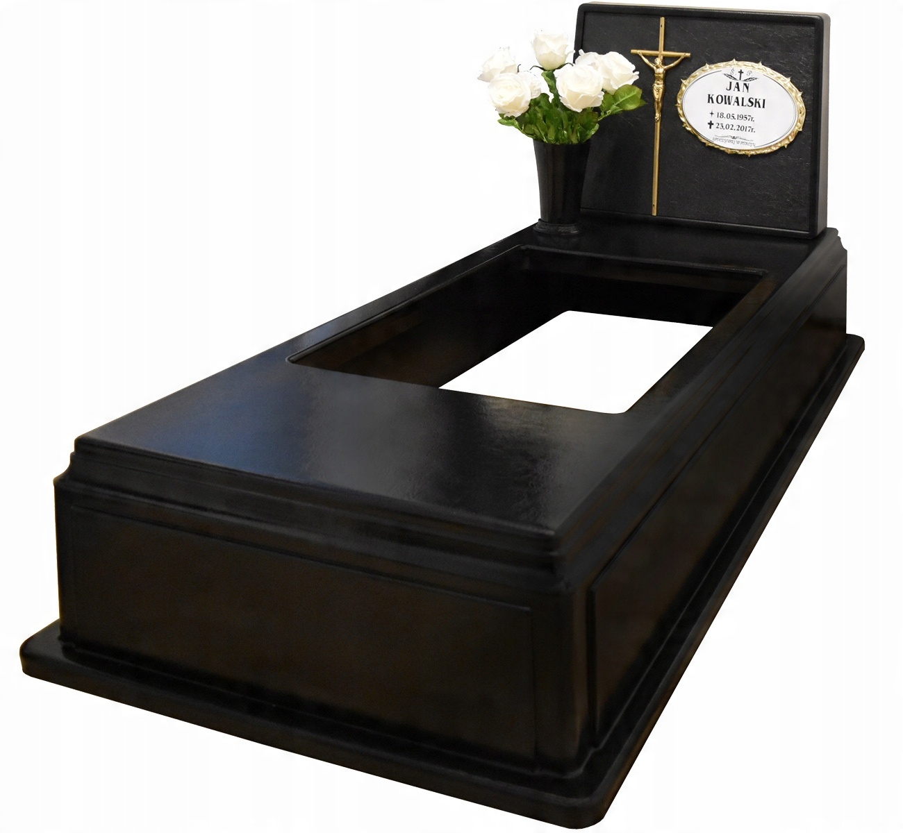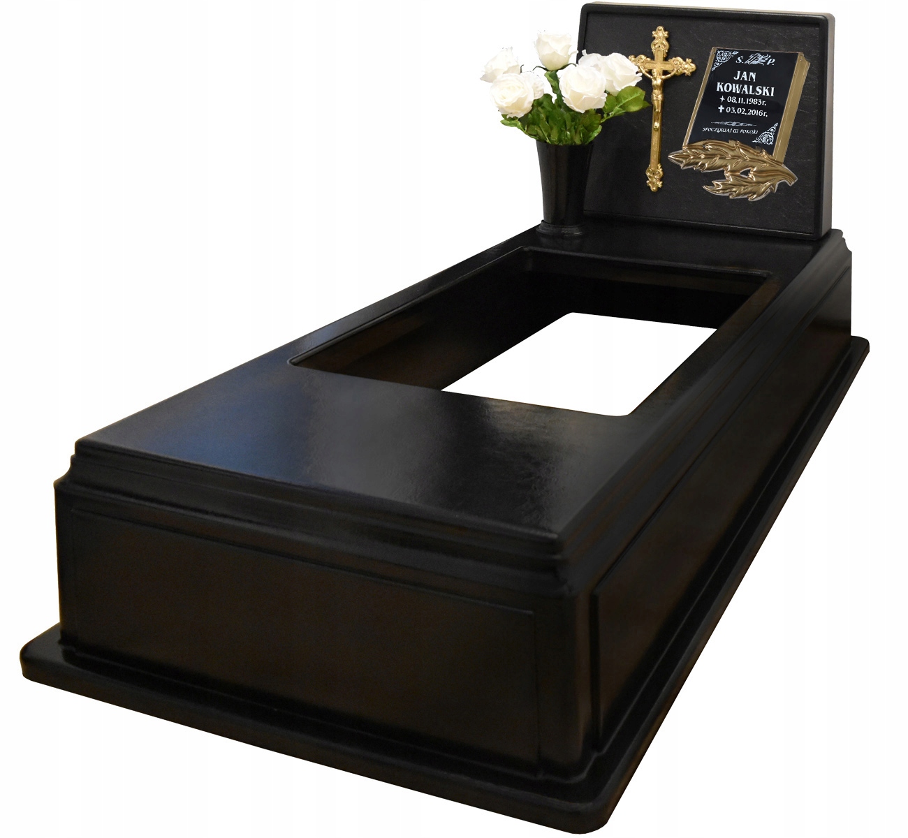 Пластмасовий цвинтарний пам'ятниквиконує функцію кам'яного надгробка. Це ідеальна альтернатива традиційному кам'яному пам'ятнику. Матеріал, з якого виготовлено виріб, характеризується високою стійкістю до погодних умов, УФ-променів, низьких температур і механічних пошкоджень.