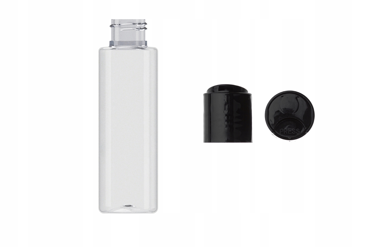 Безбарвна ПЕТ пластикова пляшка ємністю 100 мл з чорною кришкою Disc Top.