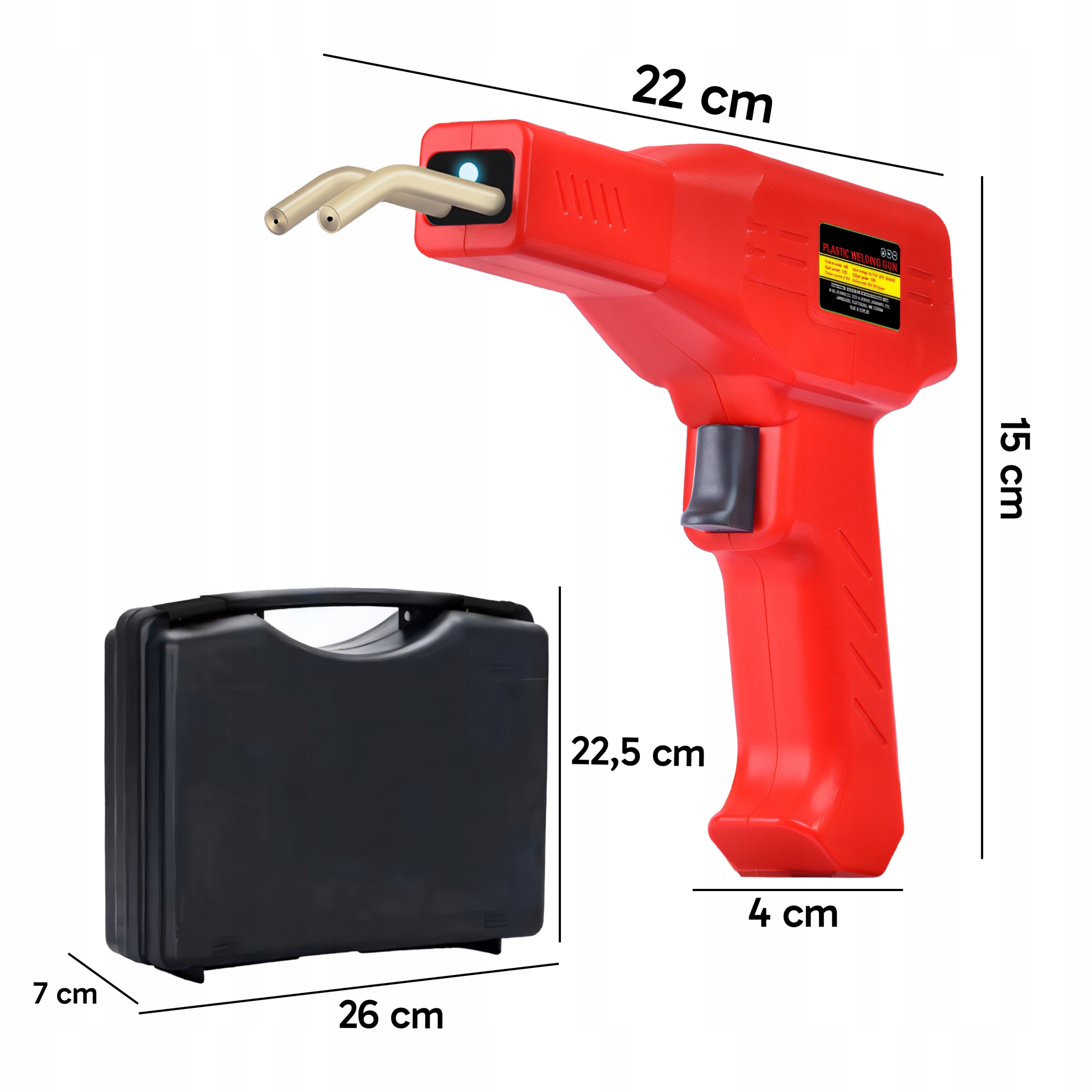 - Пластиковий зварювач характеризується компактними розмірами 22,5 см х 15,3 см, що робить його зручним для використання та легким у зберіганні, не займати багато місця в майстерні.