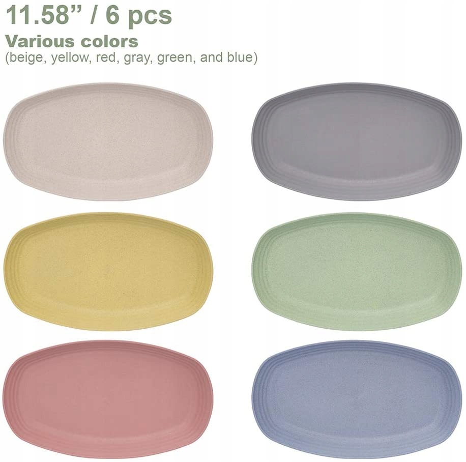 Міцний і довговічний: унікальний матеріал робить тарілку легшою та довговічнішою, ніж порцелянову, і вам не потрібно хвилюватися, що вона зламається. Мікрохвильова піч і посудомийна машина: наші високоякісні тарілки можна мити в мікрохвильовій печі та посудомийній машині. Їх легко використовувати, чистити та зберігати. Примітка: термостійкість досягає 248 градусів за Фаренгейтом (120 °C). Ідеально підходить для щоденного використання: тарілки підходять для закусок, салатів, пасти, локшини. Ідеально підходить для пікніків, вечірок, людей похилого віку, дітей, на відкритому повітрі та щоденних прийомів їжі. Упаковка та обслуговування споживачів: 6 тарілок (зелена, жовта, рожева, блакитна, бежева, сіра). Розмір: 11,58 дюйма / 29,4 см. Вага: 128 г/тарілку.