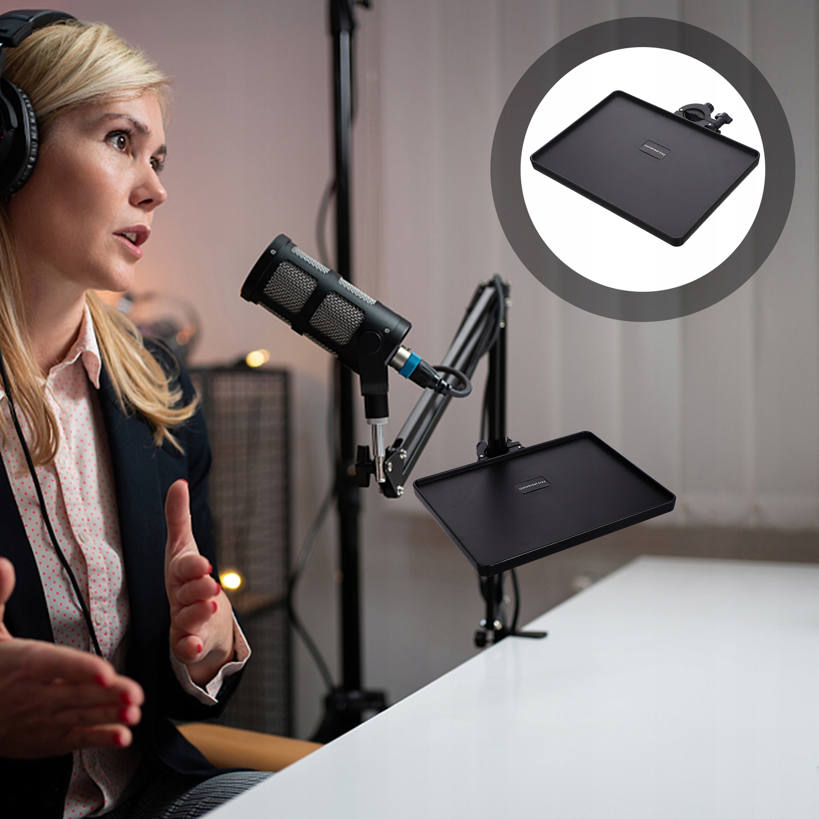 ✅Піднос із легким регулюванням висоти, який можна надійно прикріпити до мікрофонної стійки.