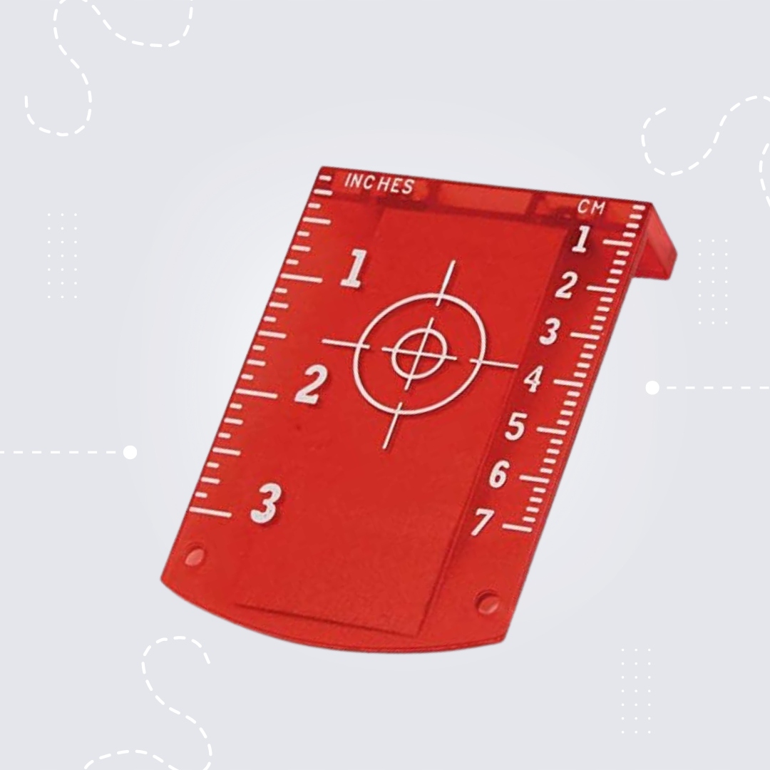 Лазерна пластина значно підвищує точність, точність b >і видимість вимірювання. Все це також завдяки пластині, встановленій на задній панелі, на якій ми можемо бачити лазерні промені в будь-яких умовах. Точність результатів є ключовим аспектом під час різних типів монтажу та робіт, в яких використовується лінійний лазер. Використання цільової мішені необхідно при вимірах, монтаж >стенових панелей або підвісних стель.