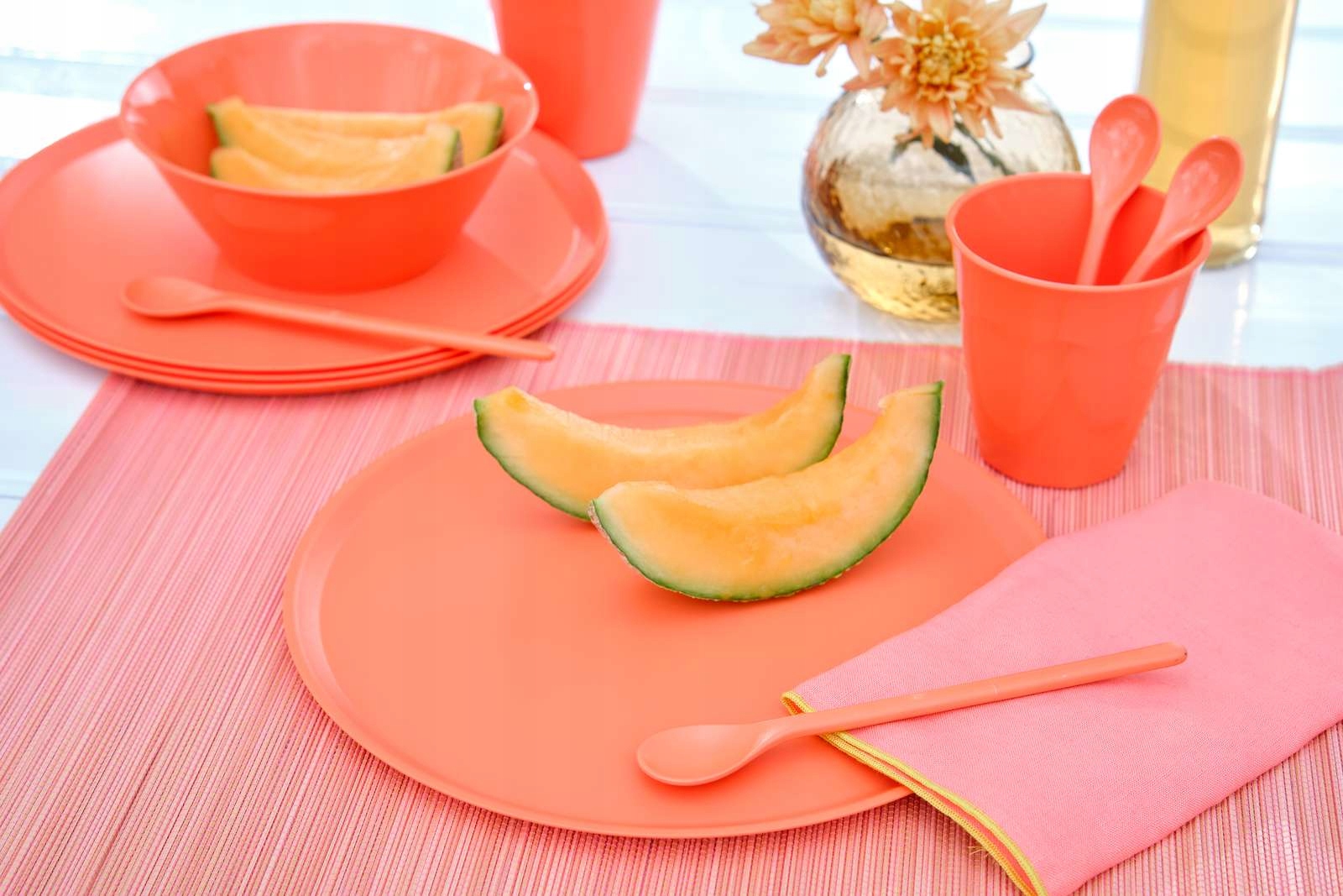 Тарілка дуже приємна на дотик і ідеально підходить для використання в саду та пікніках. Його зручна форма змушує його також безпечно захопити діти. Це легко транспортувати і чудово кучиться. Матеріал є екологічно чистим і повністю без меламіну та бамбукових волокон.