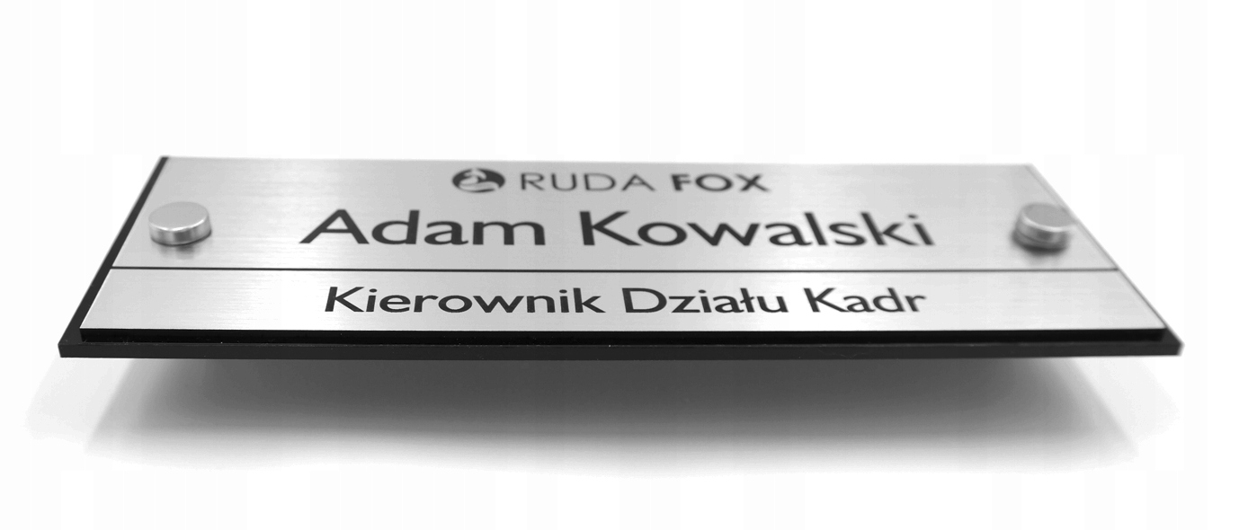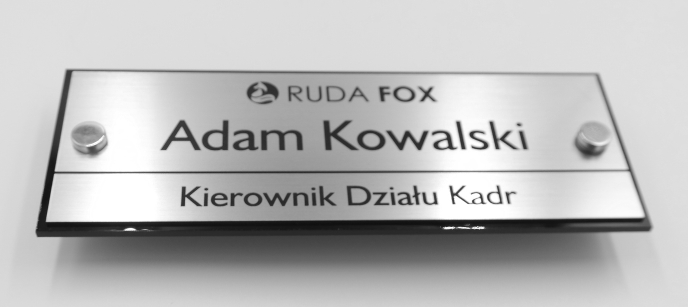 - Розміри: 200х70 мм, гравірувальний ламінат 194х64 мм, товщиною 1,6 мм, наклеєний на основу з оргскла чорного кольору товщиною 3 мм.