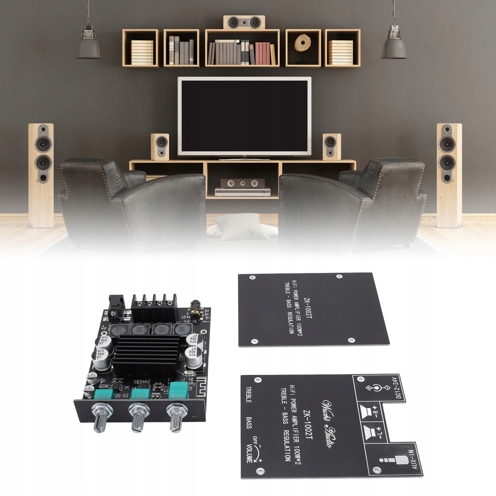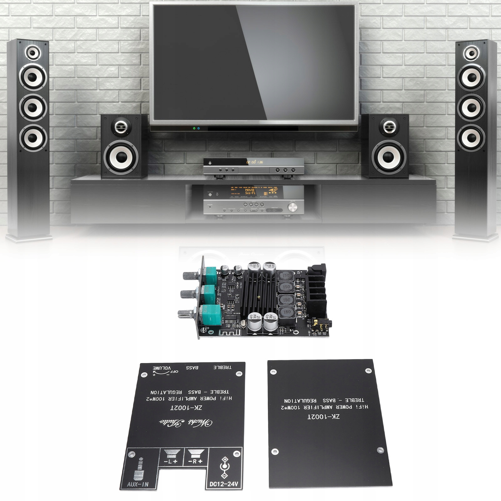 Функції: 1. Плата підсилювача Bluetooth: плата підсилювача потужністю 100 Вт і 100 Вт з регулюванням високих і низьких частот, DC 12-24 В, входи BT і AUX, 2.0-канальна плата стереопідсилювача для бездротових динаміків своїми руками, пароль не потрібен.