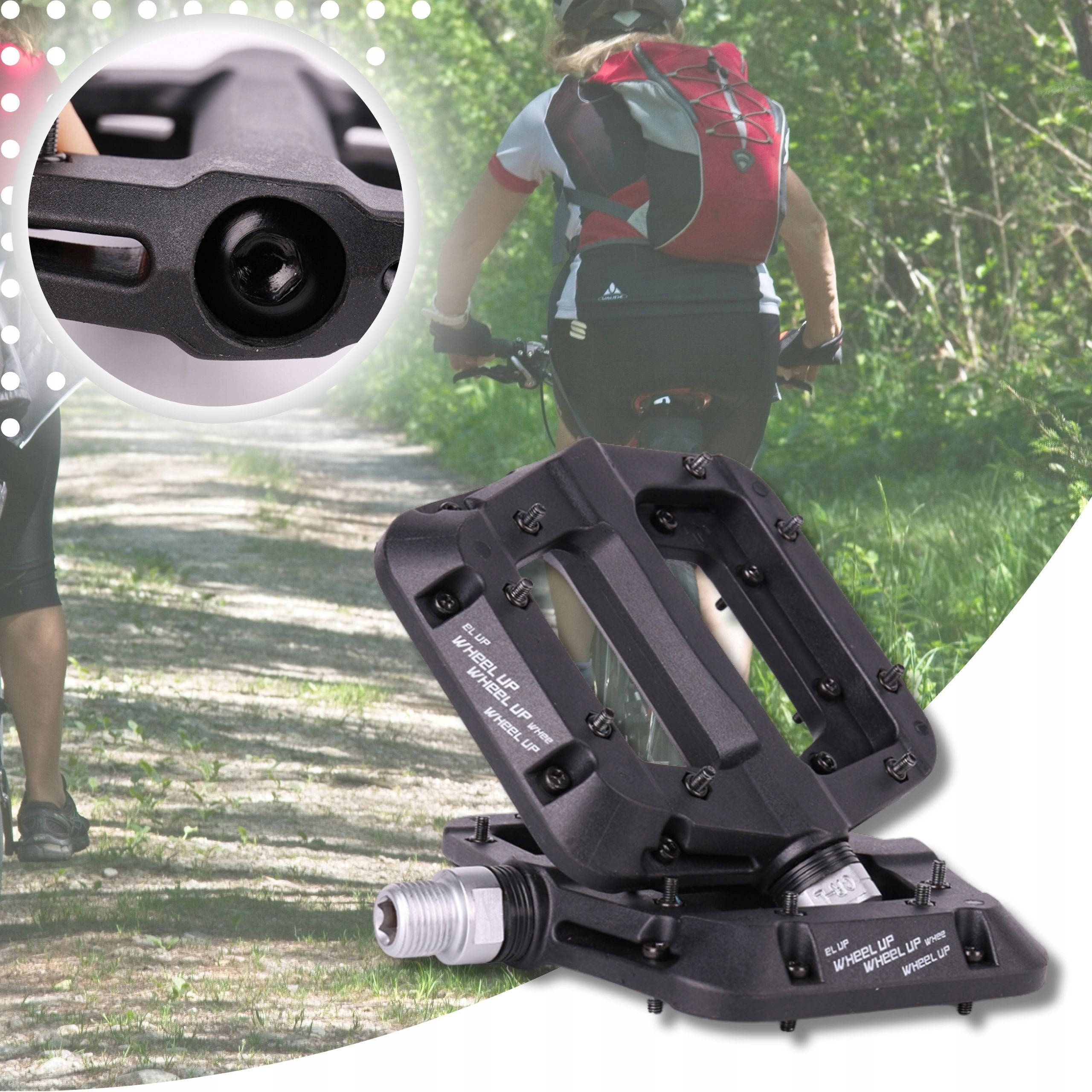 Платформи великі (110 х 115 мм) і водночас низькі (10-13 мм). Вони оснащені 8 металевими шпильками з кожного боку, які вкручуються ззаду, тому їх дуже легко замінити. Завдяки всім цим функціям педалі Wheel-Up забезпечують високий комфорт їзди та дуже хороший контроль над велосипедом!