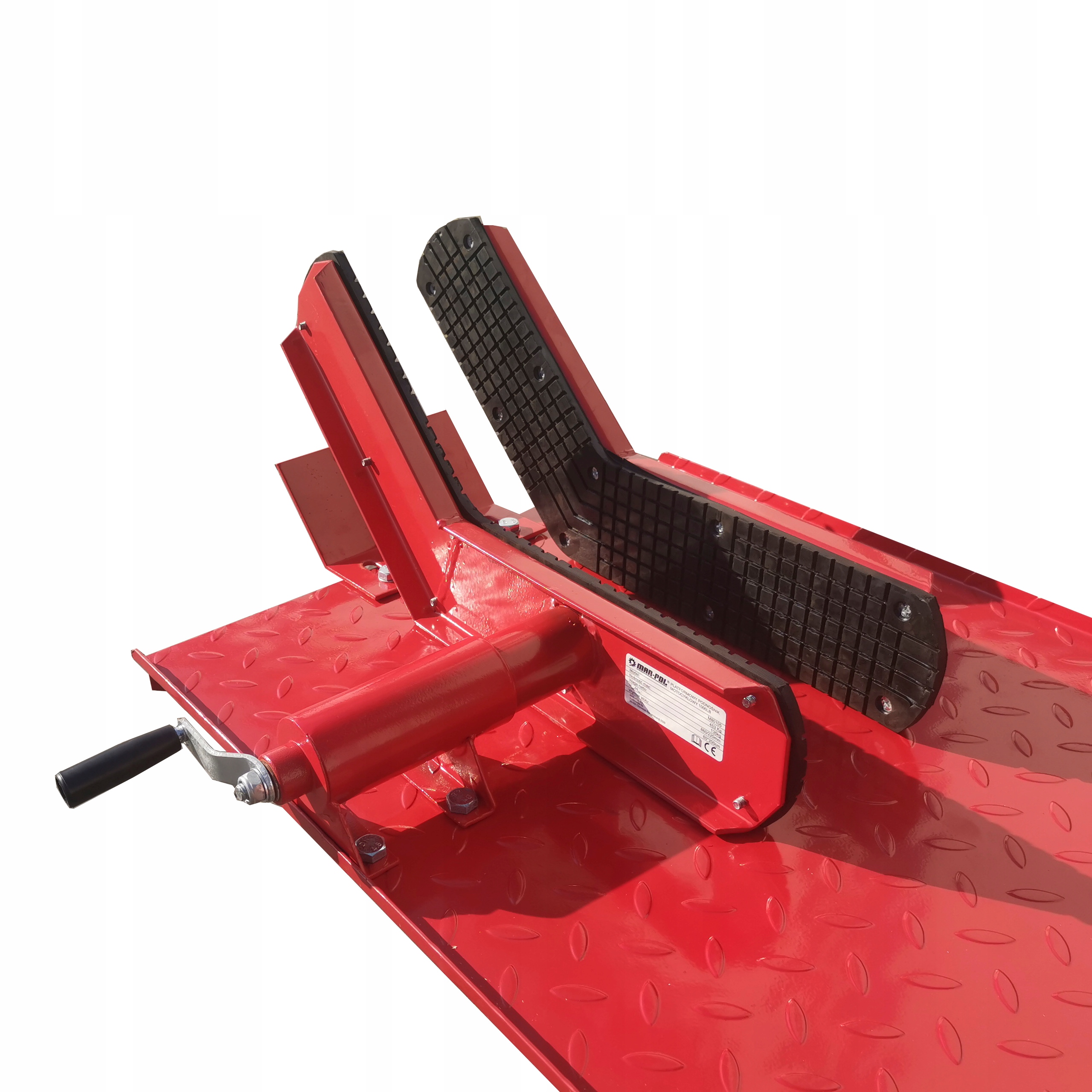 Протиковзка структура робочої поверхні та лещата, що фіксують переднє колесо, ефективно стабілізують положення мотоцикла на платформі.