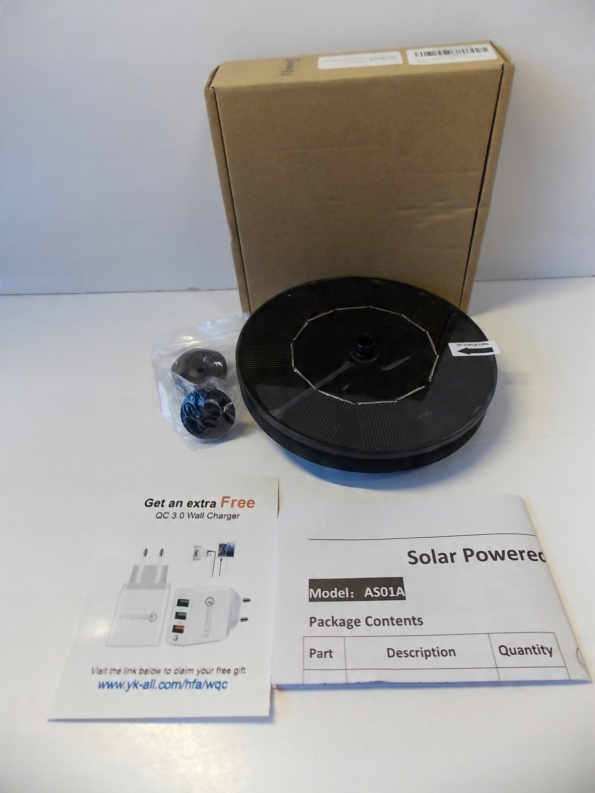 Фонтан складається з дуже ефективної сонячної панелі та нового насоса без щітки (менше енергоспоживання, ніж традиційний насос) Сонячний фонтан підходить для прикраси в саду, акваріумі, невеликому ставку, додатково циркуляція води для кисню. p>