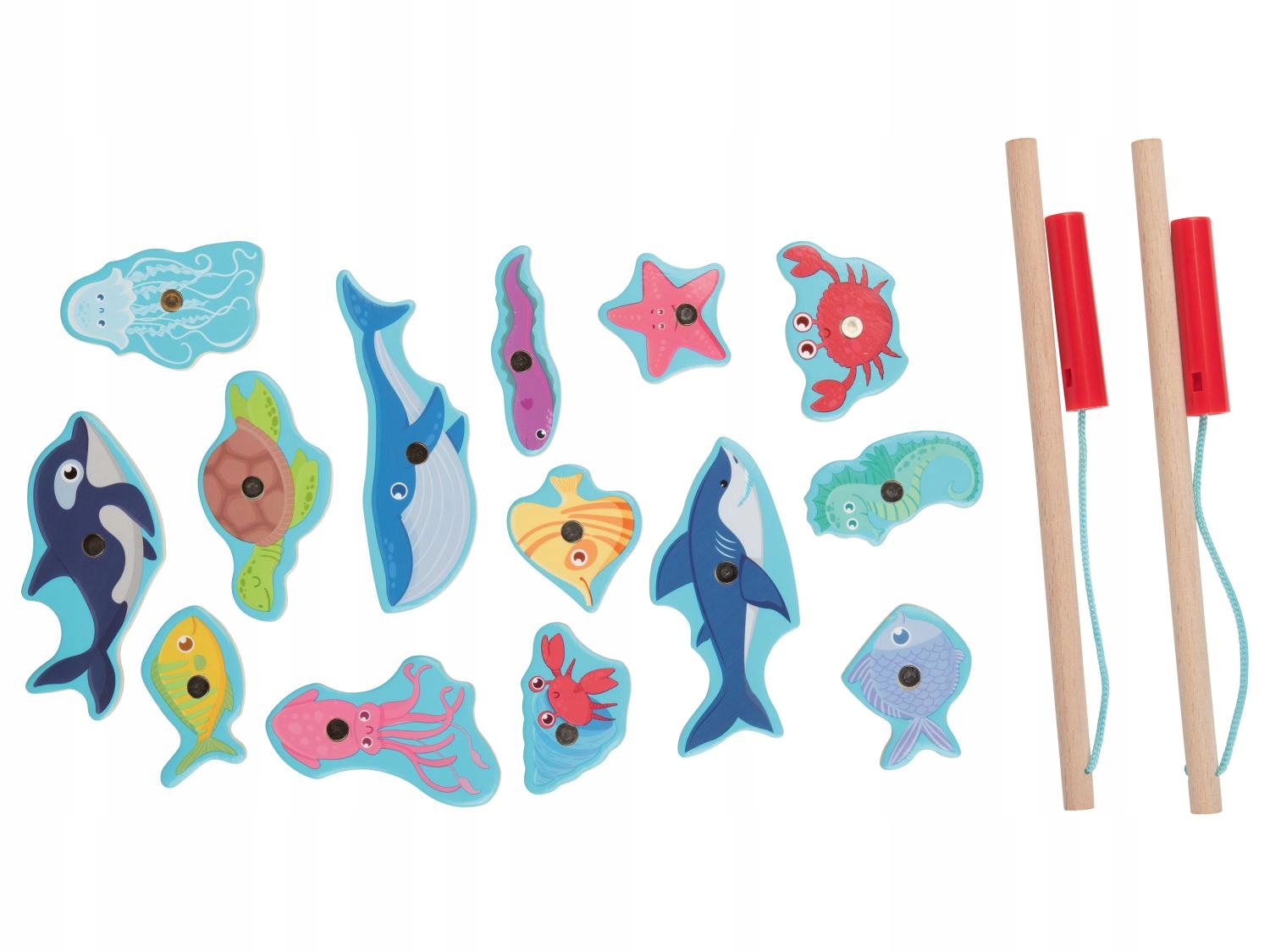 Іграшка поєднує чудову розвагу з вивченням спритності та підрахунком! Завдяки магнітним стрижням діти можуть ловити рибу з барвистими морськими істотами, розвиваючи ручну координацію. дерев’яні елементи - набір містить 14 милих морських тварин , виготовлених з твердої деревини.
