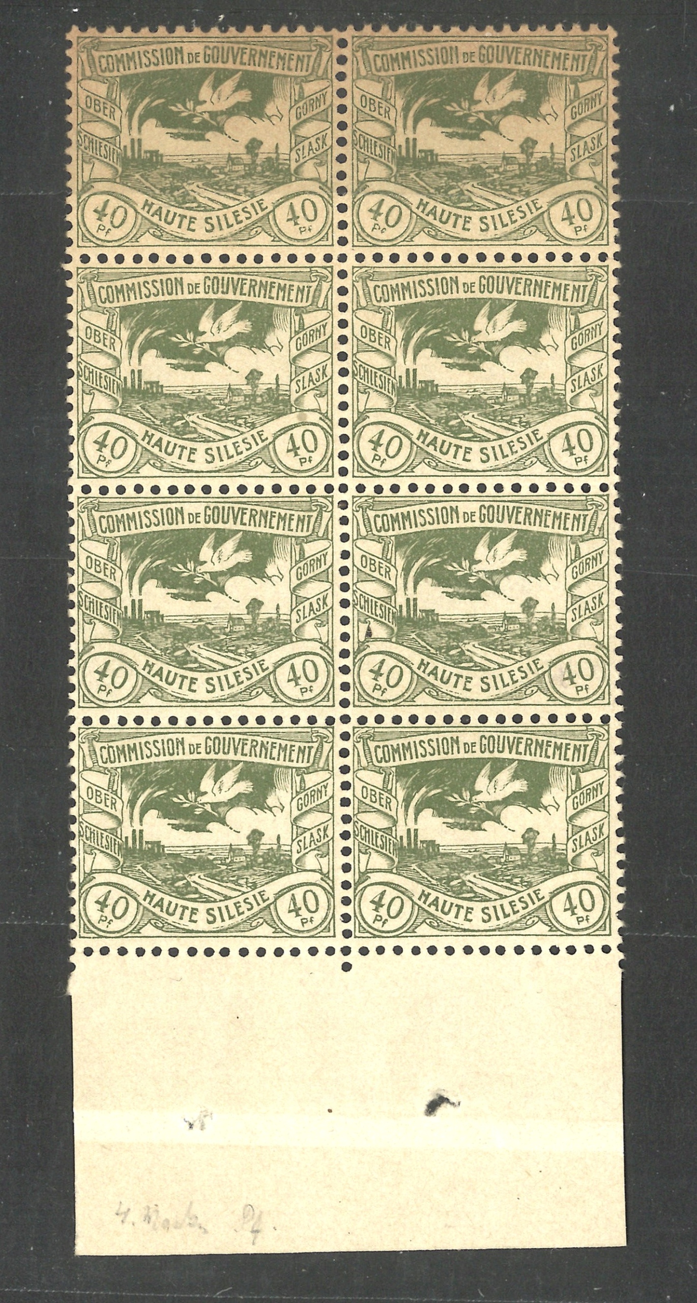 8 чистих марок у блоці по 3 пф кожна з Верхньої Сілезії. Один штамп із слідом клею.