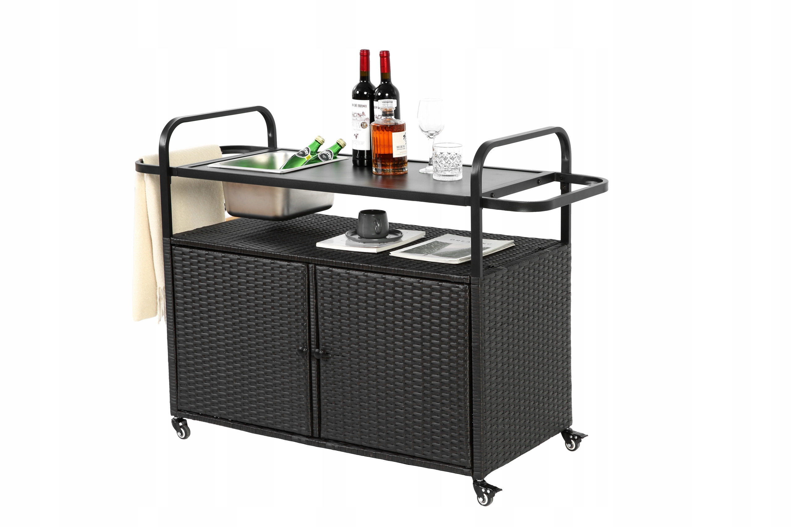 Плетена кухонна коляска, садовий стіл для їдальні, подача візки на внутрішній дворик з шафою