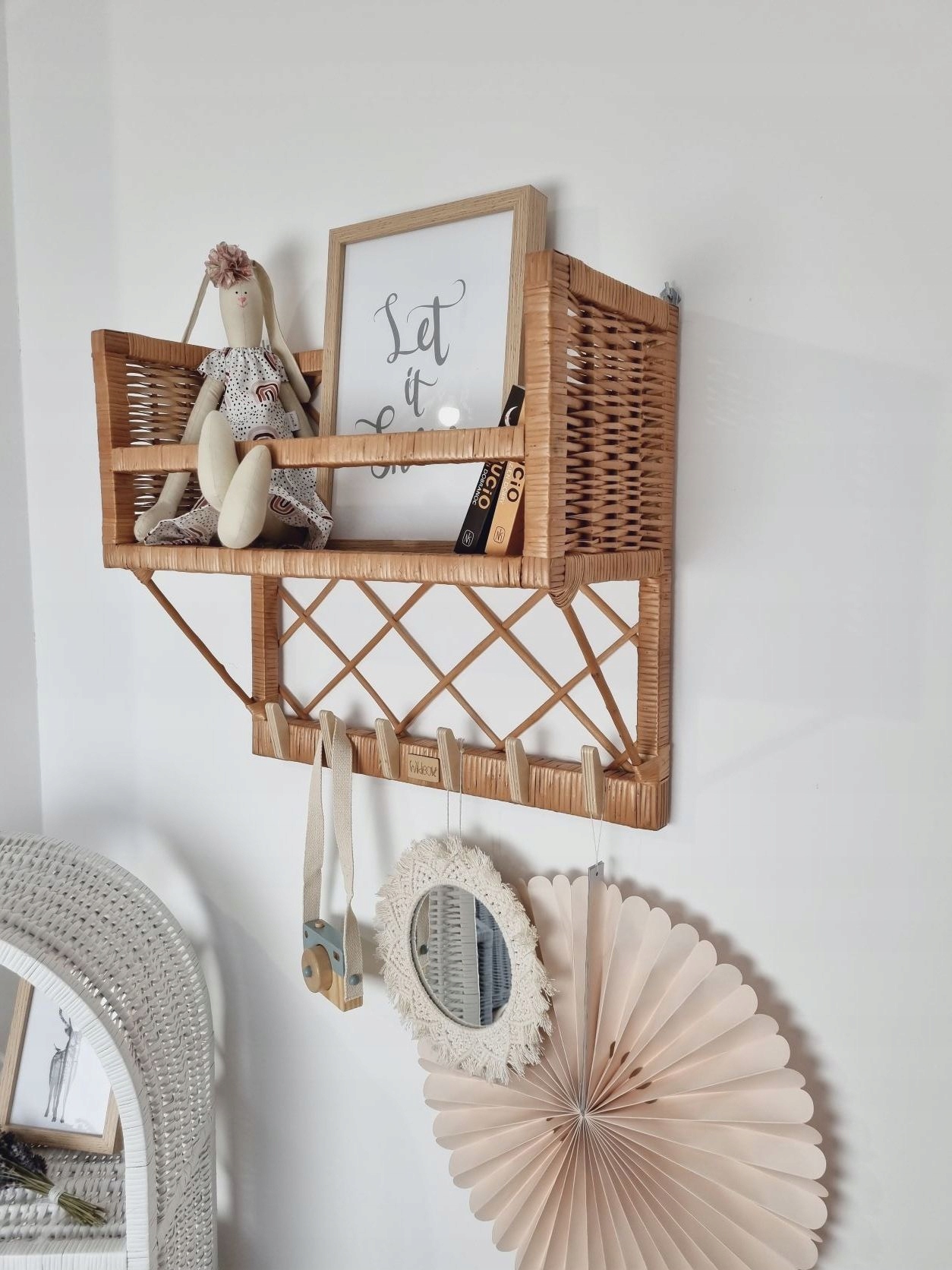Плетена навісна шафа з вішалками НАТУРАЛЬНА плетена полиця