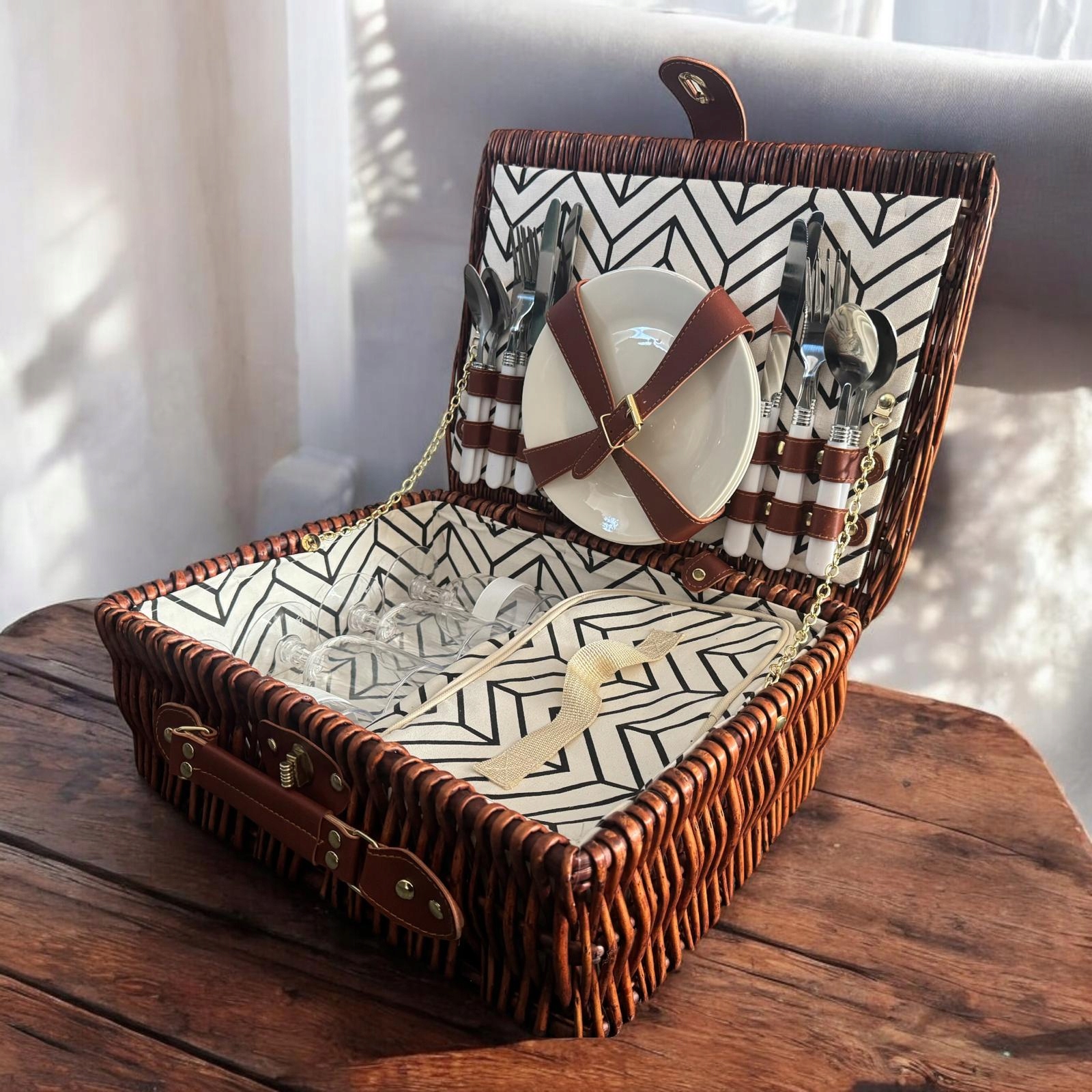 Плетений кошик для пікніка з елегантним обладнанням 2OS +термоторба для пікніка