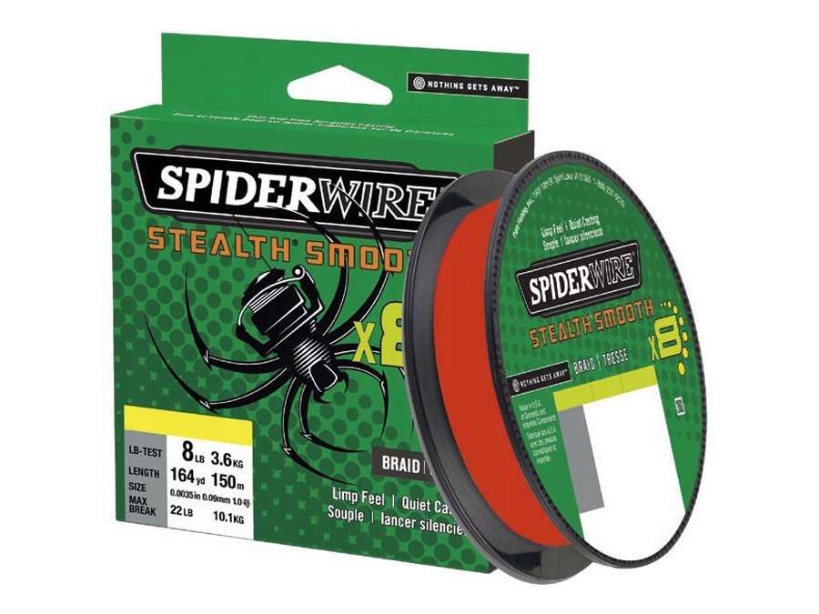 SpiderWire Stealth Smooth — це щільно сплетена коса з 8 ниток, виготовлена в Каліфорнії. Він шовковисто-гладкий, тонкий і м'який, що гарантує довгі, плавні і, головне, тихі закидання.