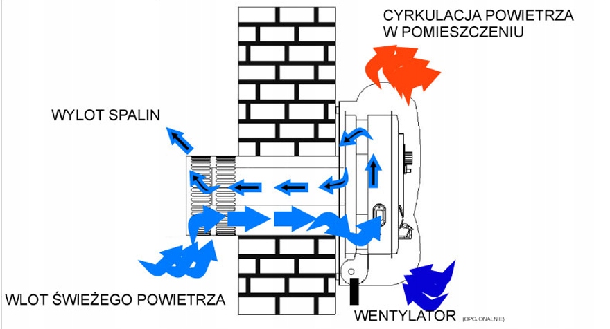 Димова труба, тобто вихід вихлопних газів і впуск повітря, включені. Загальна довжина випуску вихлопних газів/повітрозабірника разом із: 60 см. Підходить до стіни максимальною товщиною 40 см. Можна придбати довший димохід довжиною 80 см.