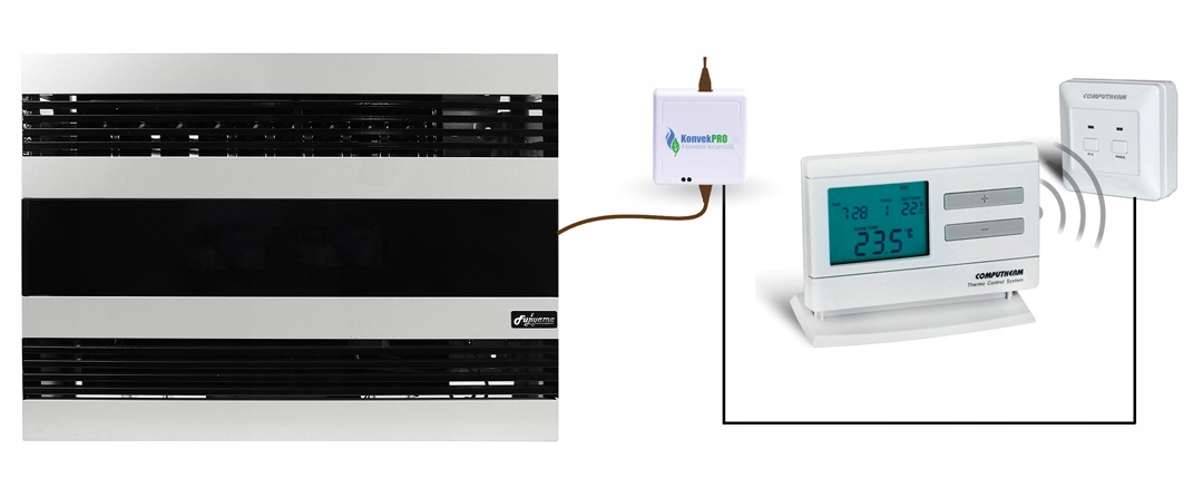 Механічний термостат "КонвекПро" з програмованим Wi-Fi термостатом - ще більше ефективніше, зручніше та легше керувати газовим обігрівачем через wifi термостат. «КонвекПро» — контролер, який безпосередньо керує роботою газового обігрівача. Він отримує інформацію від програмованого термостата, який встановлює очікувану температуру - регулювання 5°C-25°C, а також години роботи печі. Графік роботи газового конвектора встановлюється щоденно та/або тижнево. У цьому випадку ми можемо встановити розклад через додаток для телефону та через панель керування термостата. Призначений для модернізації нових газових конвекторів, придбаних у нашому магазині, а також для існуючих обігрівачів.