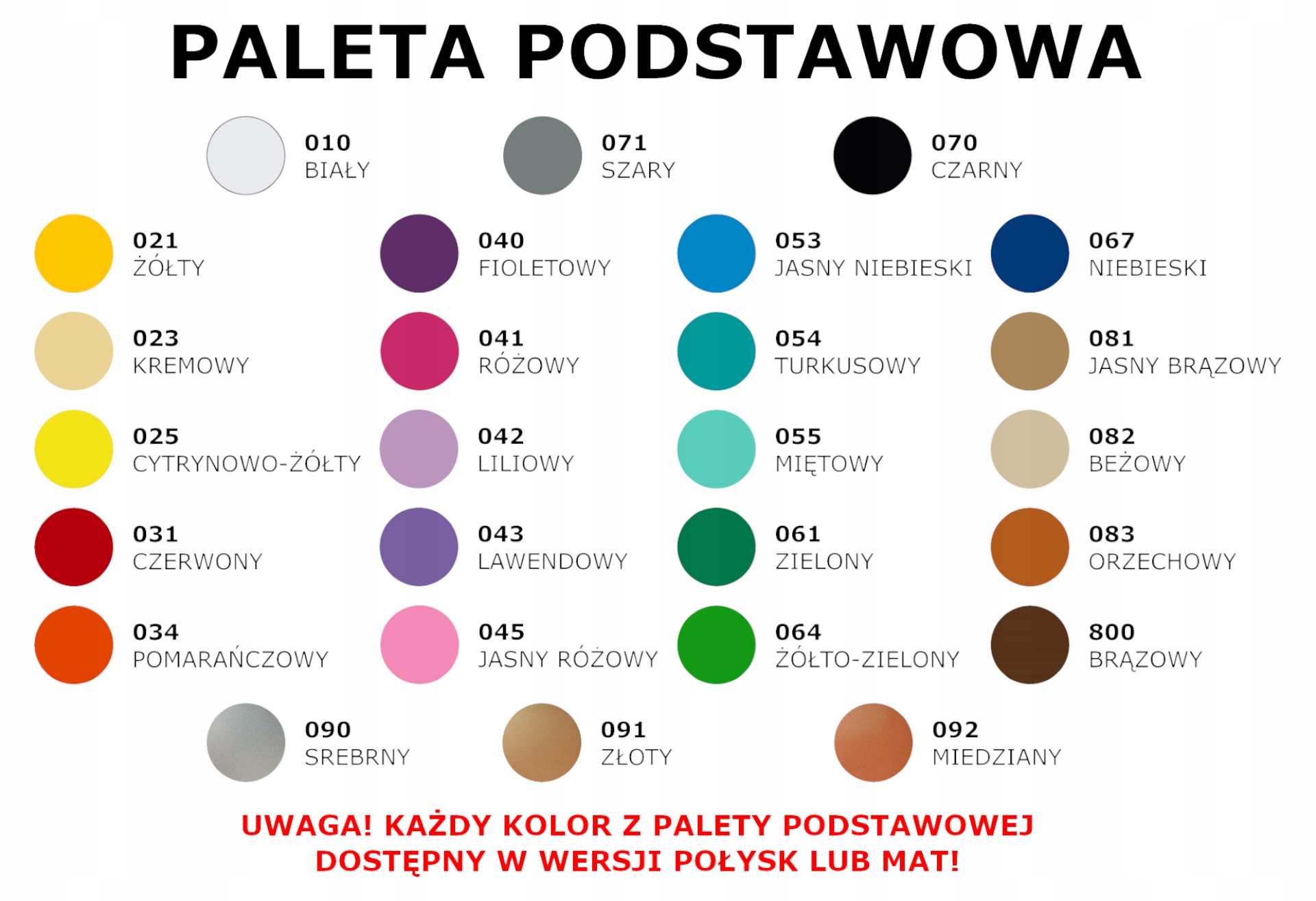 ДОСТУПНІ КОЛЬОРИ З ОСНОВНОЇ ПАЛІТРИ: