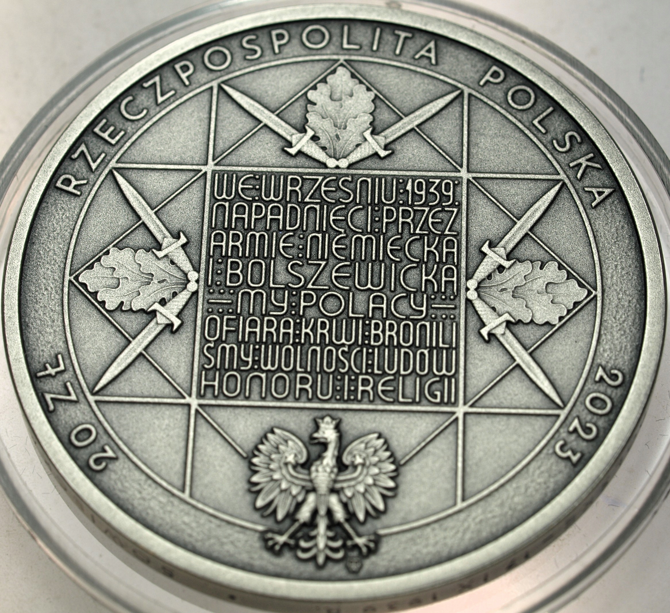 PLN 20 PLN 2023 Радянська агресія на Польщі 17 вересня 1939 р. Срібло. Оригінал. Ознайомтеся з іншими аукціонами - Зберіть рідкісні значення з Numismrato! Справжнє фото. Ви ставитесь до того, що є на знімках. Після 6 вечора, у вихідні дні та під час відпустки.