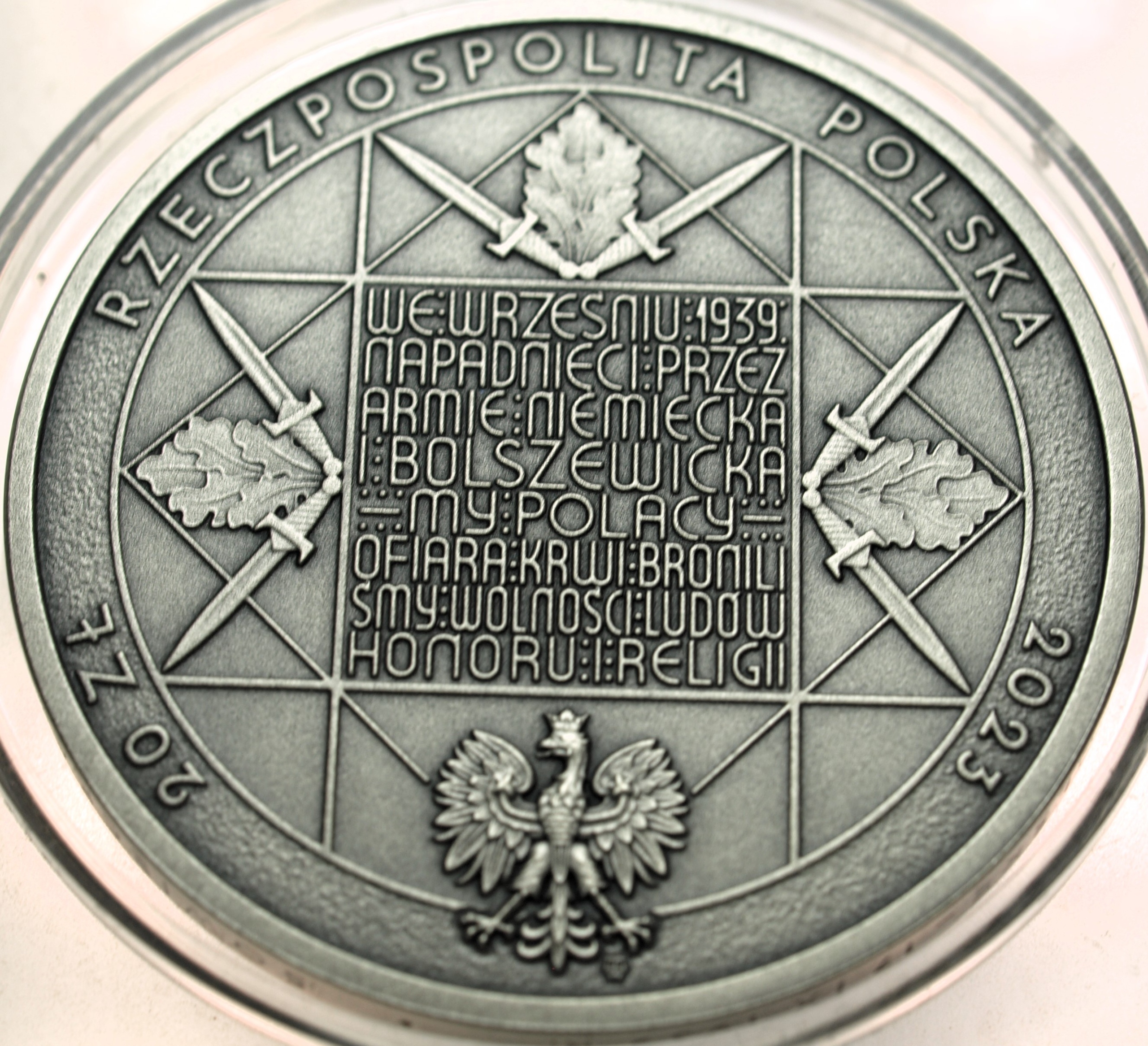 PLN 20 PLN 2023 Радянська агресія на Польщі 17 вересня 1939 р. Срібло. Оригінал. Ознайомтеся з іншими аукціонами - Зберіть рідкісні значення з Numismrato! Справжнє фото. Ви ставитесь до того, що є на знімках. Після 6 вечора, у вихідні дні та під час відпустки.