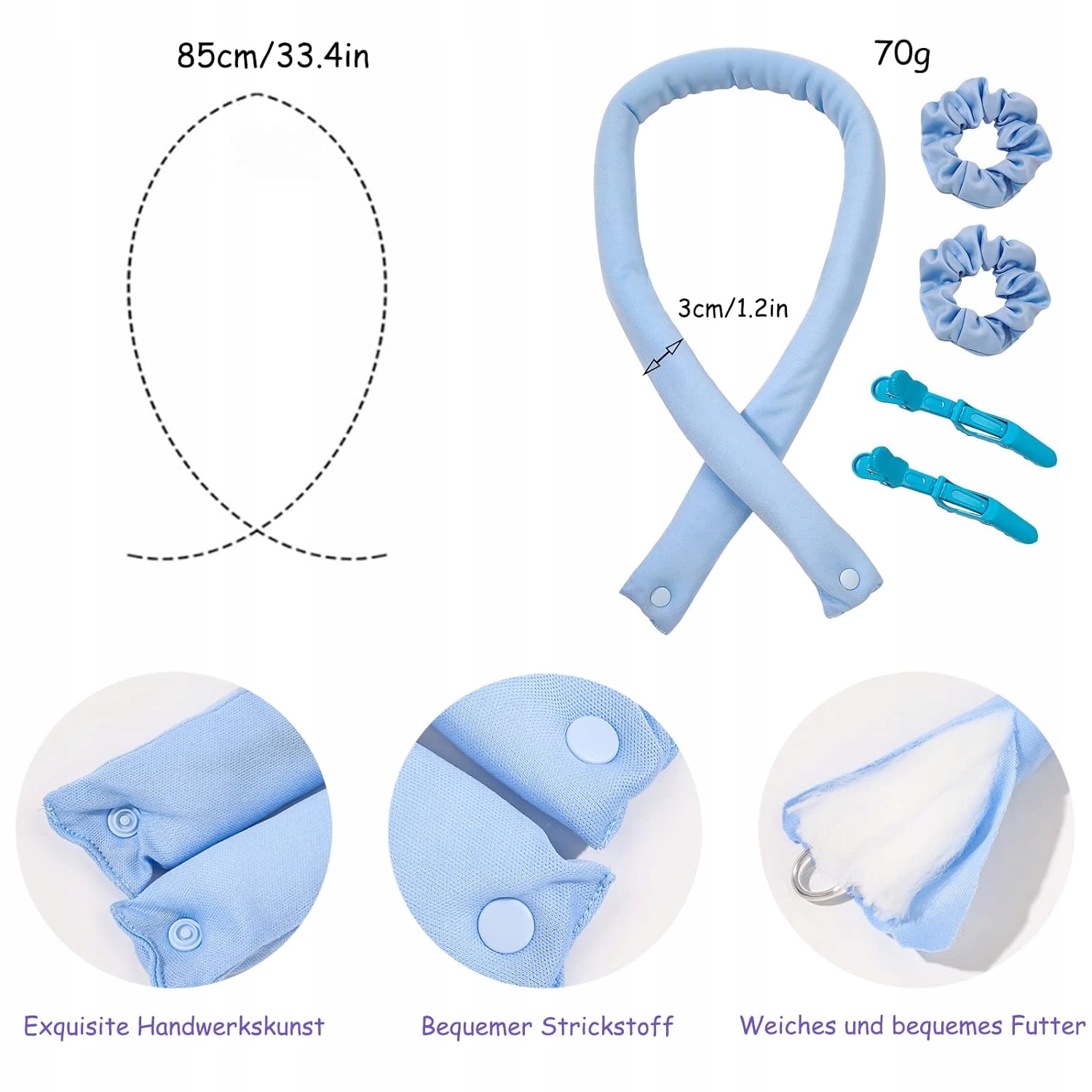 - Економія часу: Ви можете легко одягнути її, дивлячись ви телевізор чи засинаючи. Створюйте власну зачіску в будь-який час і в будь-якому місці. Ви можете спокійно спати всю ніч, а наступного ранку у вас будуть красиві кучері. Вам не потрібно вставати рано, щоб розчесати волосся.