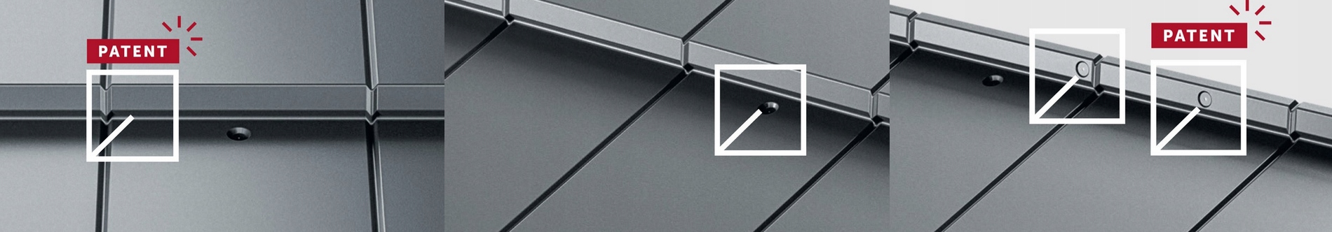 Розумно розроблені отвори та кріплення чашки дозволяють естетично розташувати гвинти та усувають напругу та, як наслідок, неестетичні деформації. Ці елементи профільовані таким чином, що вся поверхня листів торкається лати (спирається на лату), що дозволяє отримати ефект надзвичайно гладкої рівної поверхні.
