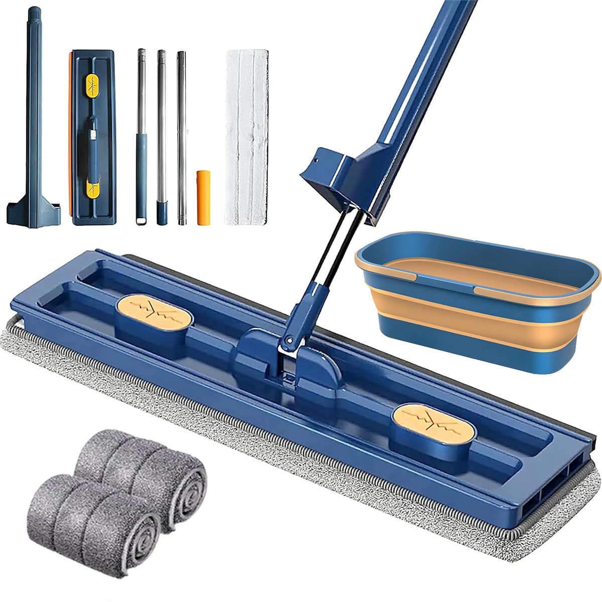 Плоска швабра з віджимом для прибирання зі СКЛАДНИМ ВІДРОМ + 2 запасні