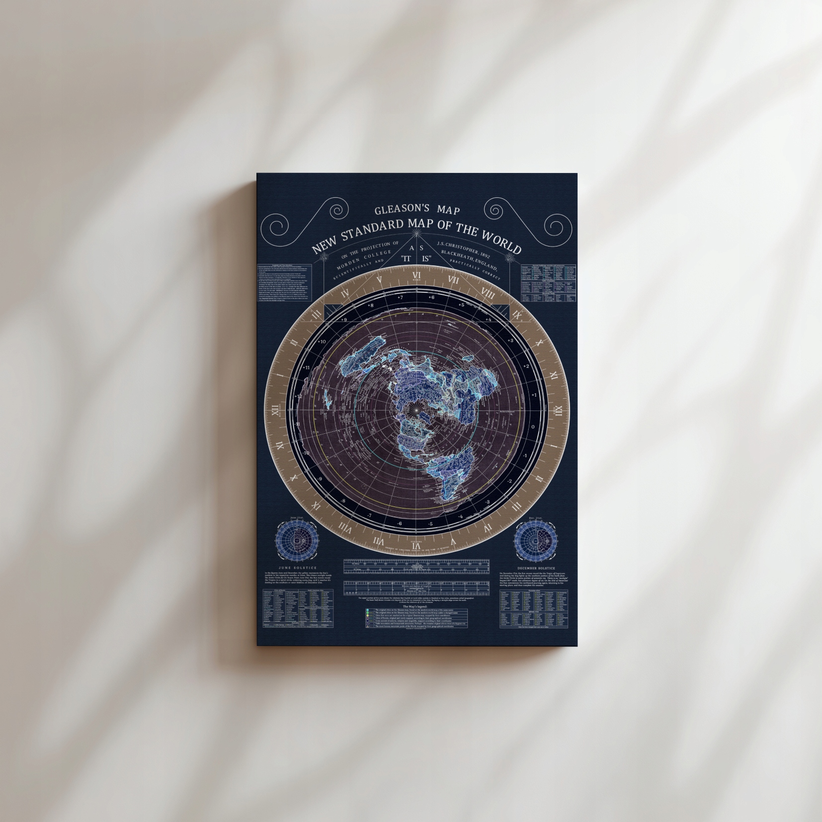 Плоска Земля Карта світу Глісон 1892 Оновлене ПОЛОТНО ЗОБРАЖЕННЯ