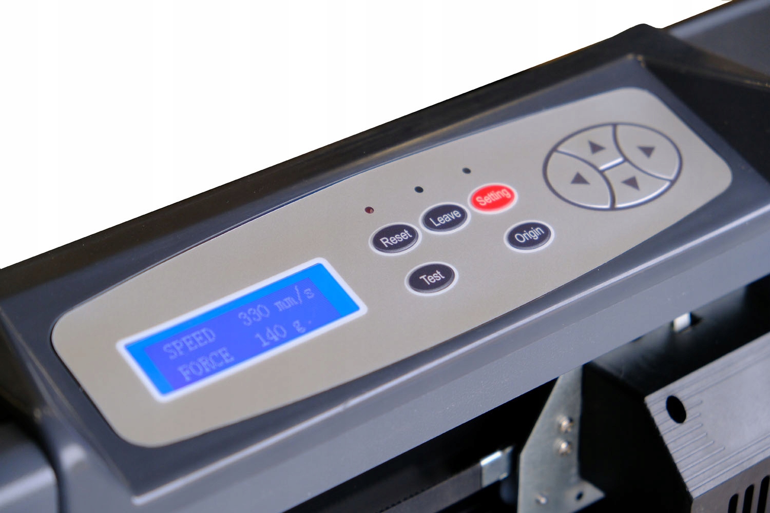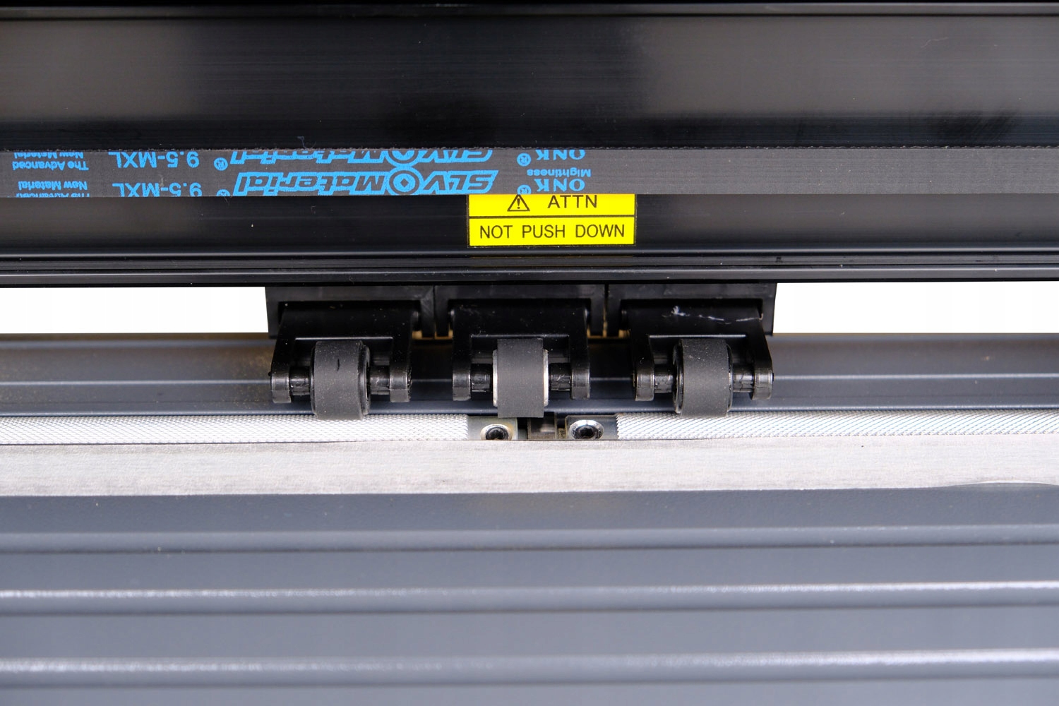 Він оснащений притискними роликами (це дозволяє точно розташувати та позиціонувати матеріал під ножем), направляючий ролик для фольги проходить по всій ширині плоттера, а РК-панель з модулем керування дозволяє змінювати параметри роботи в реальному часі.