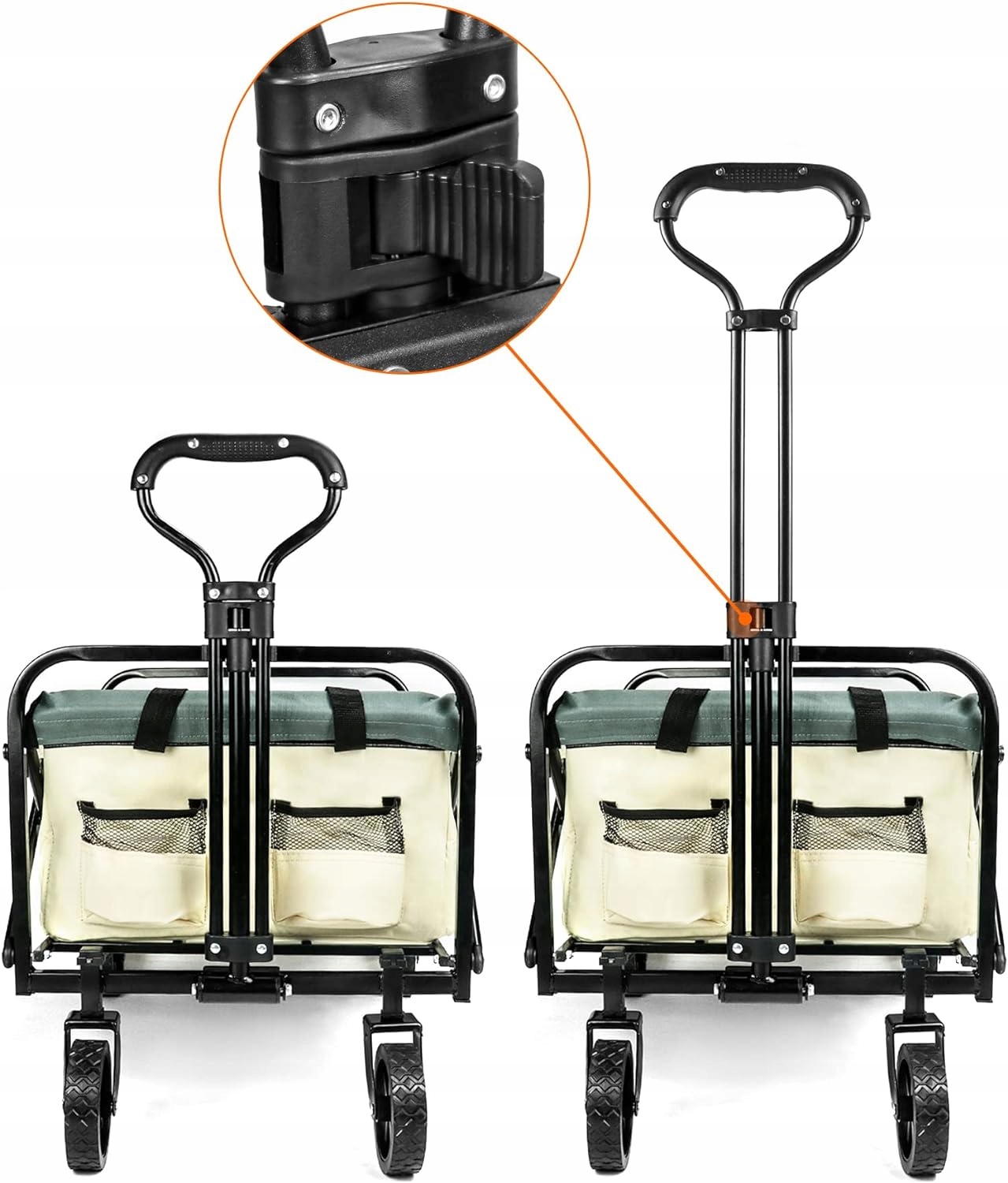 ✅ Складана коляска має міцну конструкцію зі сталевих труб з порошковим покриттям, що дозволяє їй витримувати навантаження до 80 кг. Ідеально підходить для фестивалів, шопінгу, подорожей чи інших подій, де потрібно перевозити багато речей.