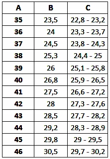 УВАГА: При виборі розміру орієнтуйтеся на розмірну таблицю та довжину стопи, оскільки розміри ЄС не відповідають класичному взуттю.