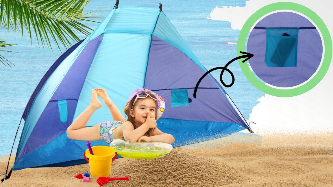 - ✅2 зручні кишені всередині намету - ідеальні для зберігання сонцезахисного крему, окулярів або невеликих закусок
