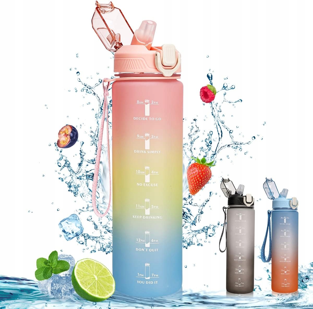 【Ідеальний подарунок】Оскільки зволоження стимулює наш метаболізм, ця спортивна пляшка води є ідеальним варіантом подарунка для родини та друзів. 【Зручний дизайн】Кришку можна відкрити миттєво простим натисканням. Діаметр 7,5-8 см поміщається в бічну кишеню рюкзака, підстаканник в машині і т. д. Пляшку зручно носити. Широкий отвір дозволяє легко чистити або наповнювати фрукти та лід. 【Герметичність】Ковпачок обладнано силіконовою прокладкою та є герметичним на 360°, щоб запобігти витоку в цьому діапазоні. Кришка закривається запобіжником, який запобігає відкриванню кришки. Вам не доведеться турбуватися про течі, а пляшку можна поставити куди завгодно. Високоякісні матеріали - пляшка для спортивного напою виготовлена з високоякісних і безпечних матеріалів, які не містять BPA. Наші пляшки з водою ідеально підходять для заміни одноразових пляшок і можуть бути використані повторно. Це дозволяє уникнути непотрібних відходів і захистити нашу прекрасну планету. Знак часу та місткість - Пляшка для води об'ємом 1 л оснащена унікальною мірною таблицею, яка дозволяє легко та наочно контролювати щоденну кількість води, тож ви можете зберігати воду протягом дня та пити достатньо води. Цей електричний чайник підходить для простих і ідеальних походів, тренувань, фітнес-студії, їзди на велосипеді та будь-яких видів активного відпочинку.