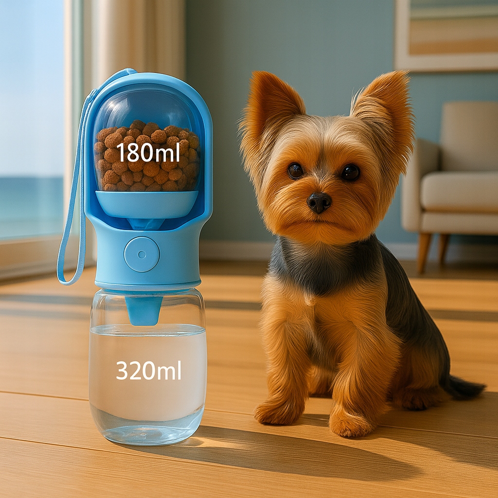 ✔️Ємність: 320 мл для води + 180 мл для корму | Без BPA | З кнопкою безпеки