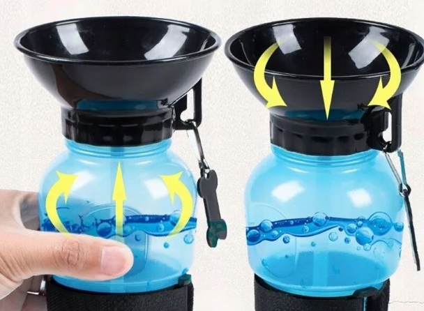Візьміть із собою в подорож пляшку, яка не викличе жодних проблем. Легка та компактна пляшка має ремінець на липучці, який можна обернути навколо зап’ястя або ремінь сумки чи рюкзака. Додатково зверніть увагу на форму чашки - вона нічим не відрізняється від стандартної. Його широка форма була розроблена таким чином, щоб і малі, і великі собаки могли отримати користь від наявності води.