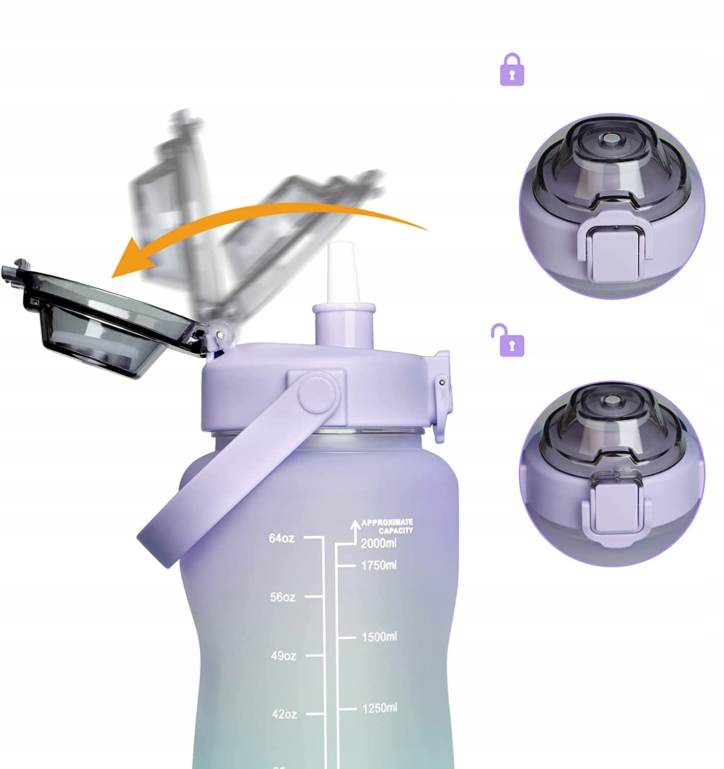 💜【Без бісфенолу А та без запаху】2-літрова пляшка для пиття виготовлена з пластику, призначеного для їжі чиста вода, яка на 100% не містить бісфенолу А та токсинів, не містить хімікатів і корисна для щоденного пиття.
