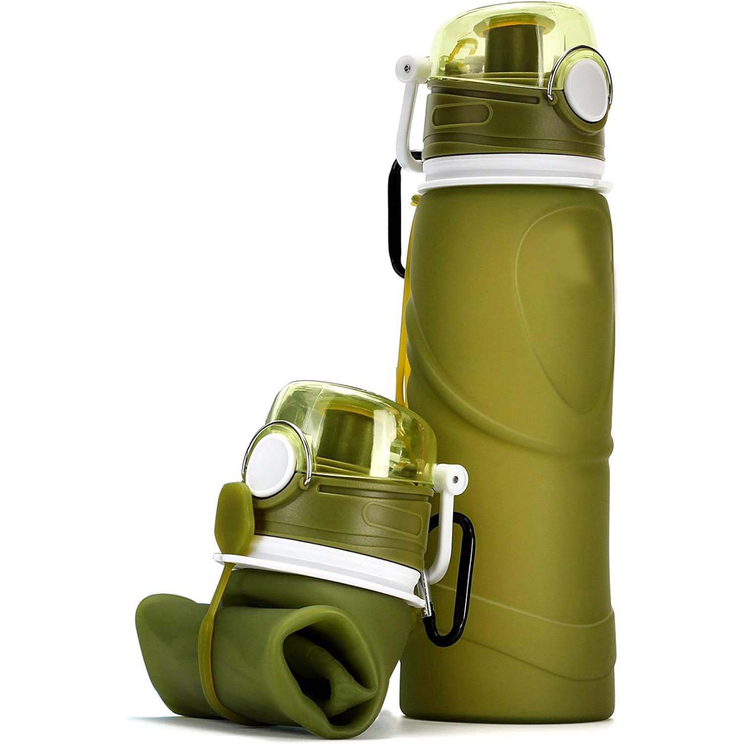 ПЛЯШКА ДЛЯ ВОДИ 750 МЛ СИЛІКОНОВА СКЛАДНА З ЗВОРОТНИМ КЛАПАНОМ ЗЕЛЕНА