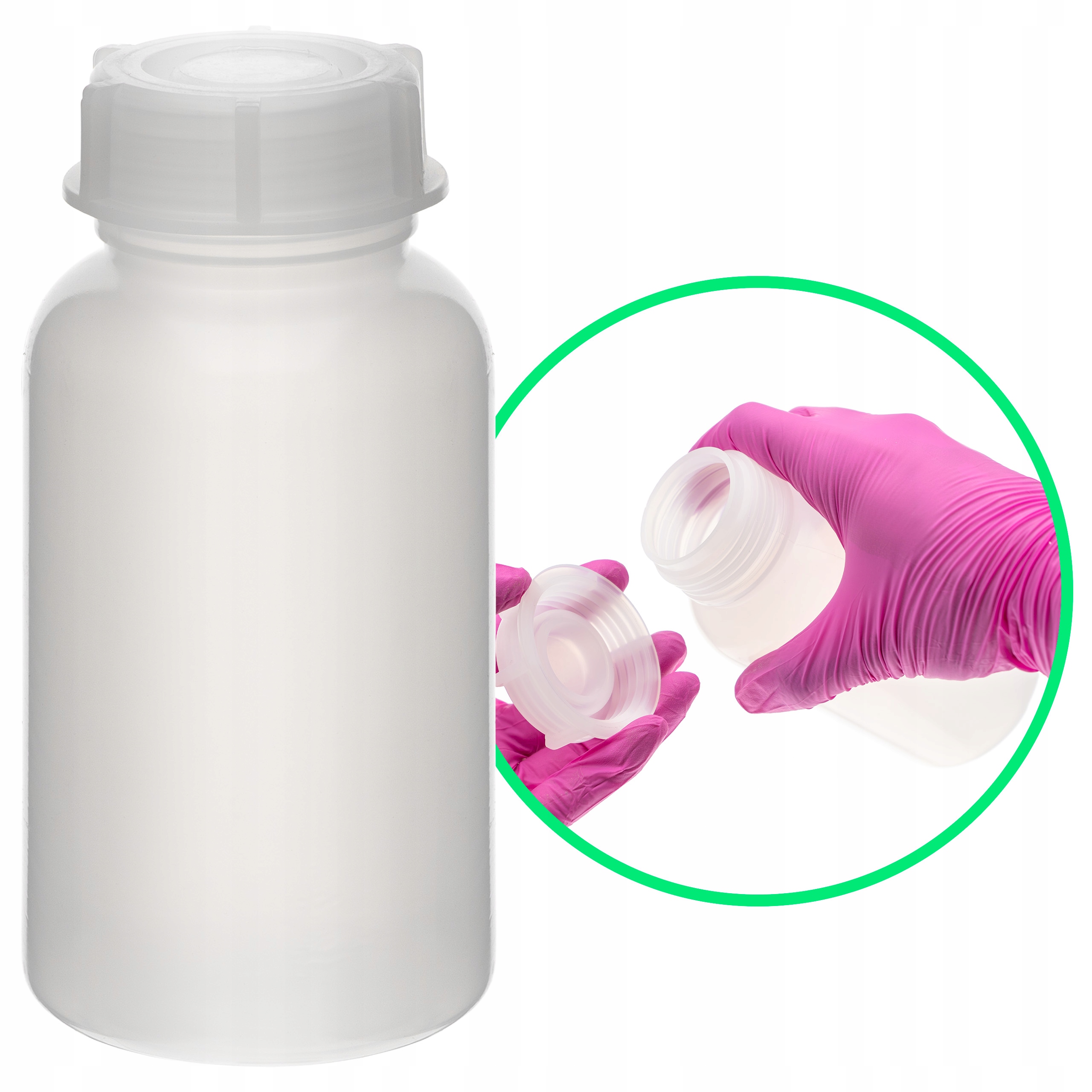 Прозора пляшка з екологічного поліетилену низької щільності (PE-LD), оснащена гнучкою кришкою з того ж матеріалу. Він характеризується широким горлом, що полегшує наповнення та дозування продуктів густої консистенції, таких як порошки та пасти. Прозорість матеріалу дозволяє легко контролювати кількість вмісту, а щільна кришка захищає від протікання. Завдяки гнучкості LDPE пляшка стійка до тріщин і ідеально підходить для щоденного використання. Хороша хімічна стійкість. Герметичний, міцний і універсальний.