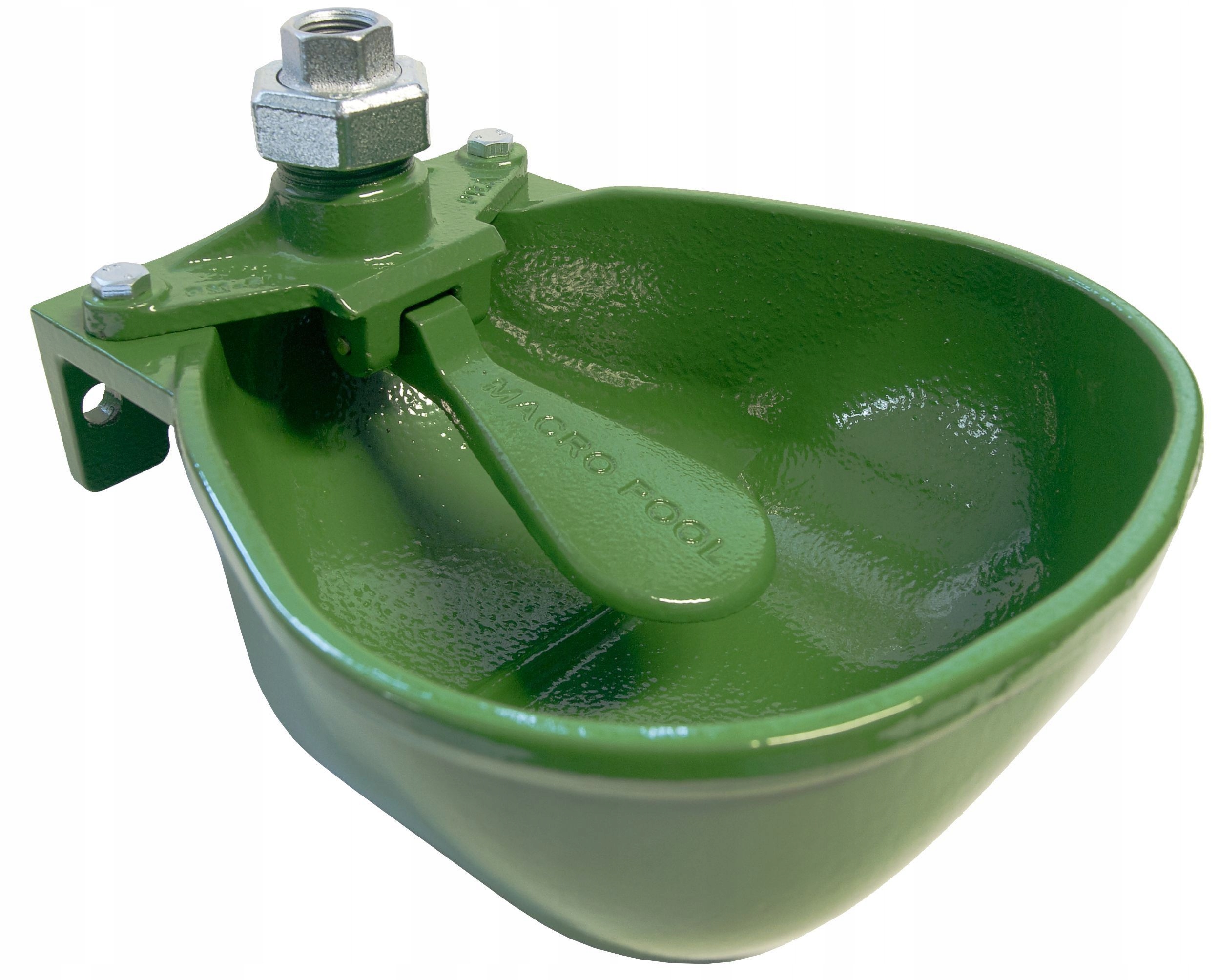 Надзвичайно міцні, широкі та глибокі поїлки. Додаткове товсте та міцне залізне лиття робить ці поїлки найкращими в цій серії. Він чудово виготовлений і зарекомендував себе у великій кількості ферм та інших. Підходить для напування великої рогатої худоби та биків. І чаша, і корпус язика виготовлені з міцного чавуну. Міцний клапан з латуні з порошковим покриттям. Подача води зверху, підключення 1/2 дюйма або 2/3 дюйма (за допомогою перехідника). Перевірений і міцний дизайн поїлки зробив її найпопулярнішою поїлкою в Польщі. Це наймасовіша і найглибша поїлка з цієї серії.