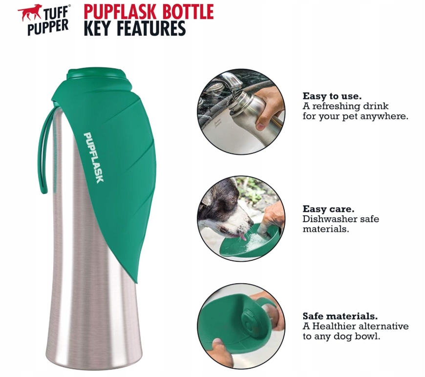 ➡️ ЩАСЛИВІ ЗВОЛОЖЕНІ ТВАРИНИє найкращими супутниками в подорожах, а PupFlask завжди під рукою, куди б ви не пішли зі своїм пухнастим другом. Переворотний листоподібний стакан лежить пласко на пляшці, коли він не використовується.